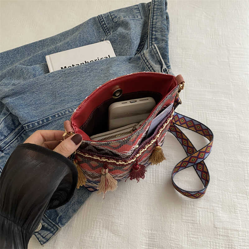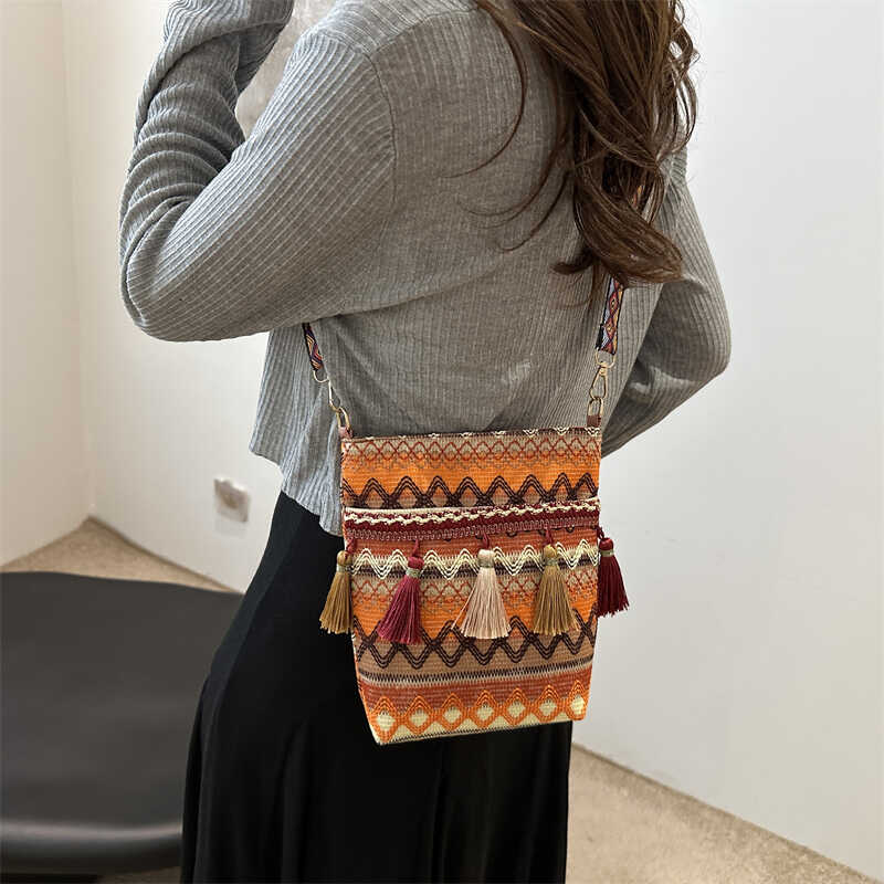 ins超火水桶包包女包2022新款宽肩带民族风单肩斜挎包休闲流苏包