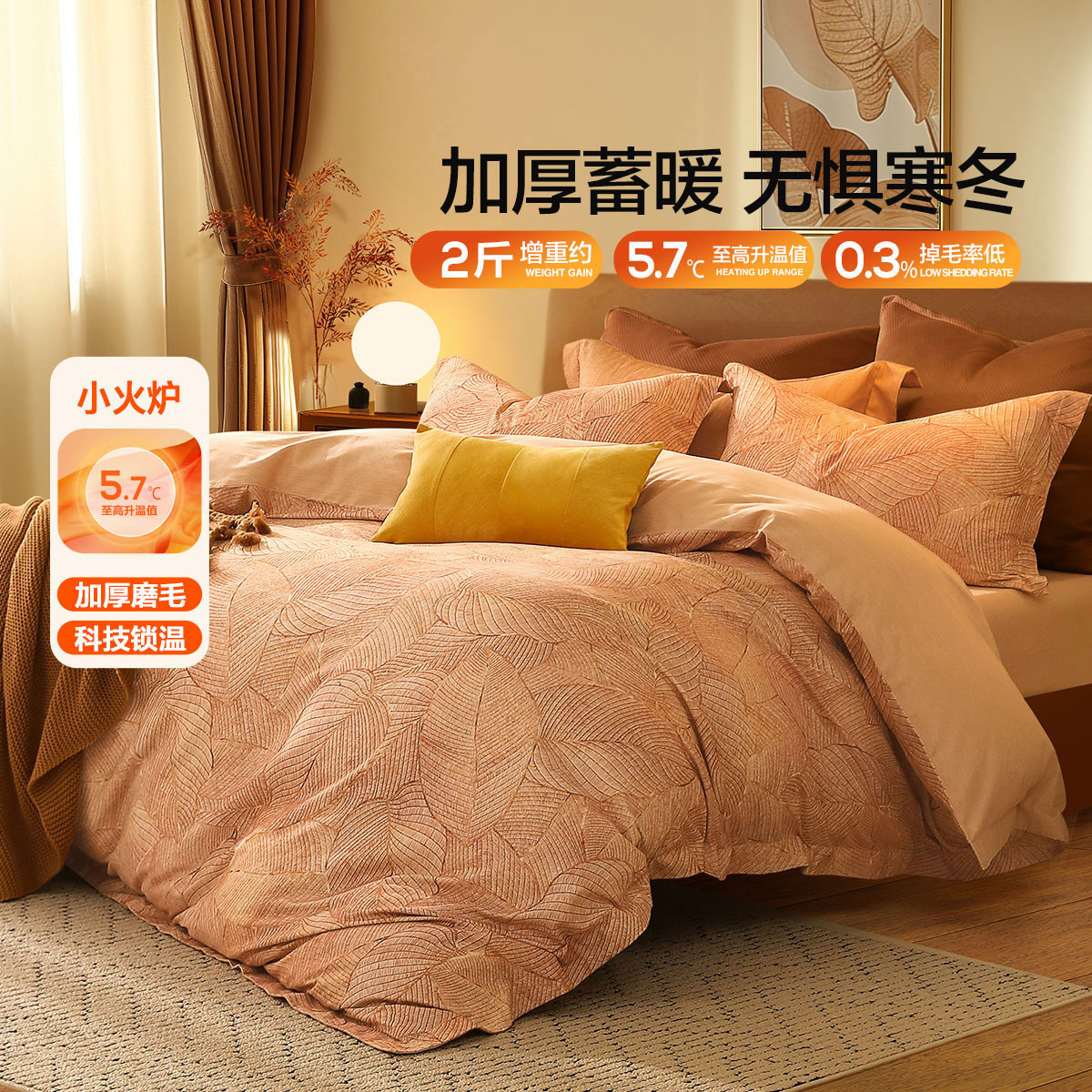 水星家纺全棉加厚磨毛四件套吸湿发热抗菌床品秋冬季纯棉被套床单