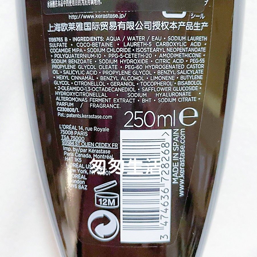 现货卡诗黑钻凝时洗发水/鱼子酱钥源洗发水250ml多效修复滋养发质