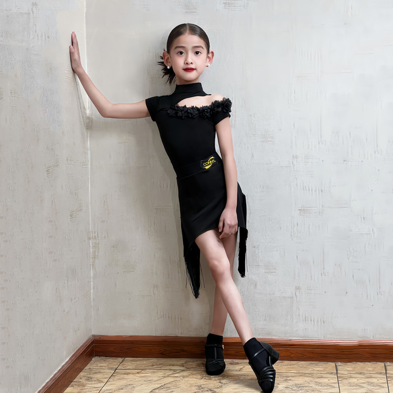 CONNY拉丁舞服装女儿童流苏裙子短袖连体上衣舞蹈练功演出表演服