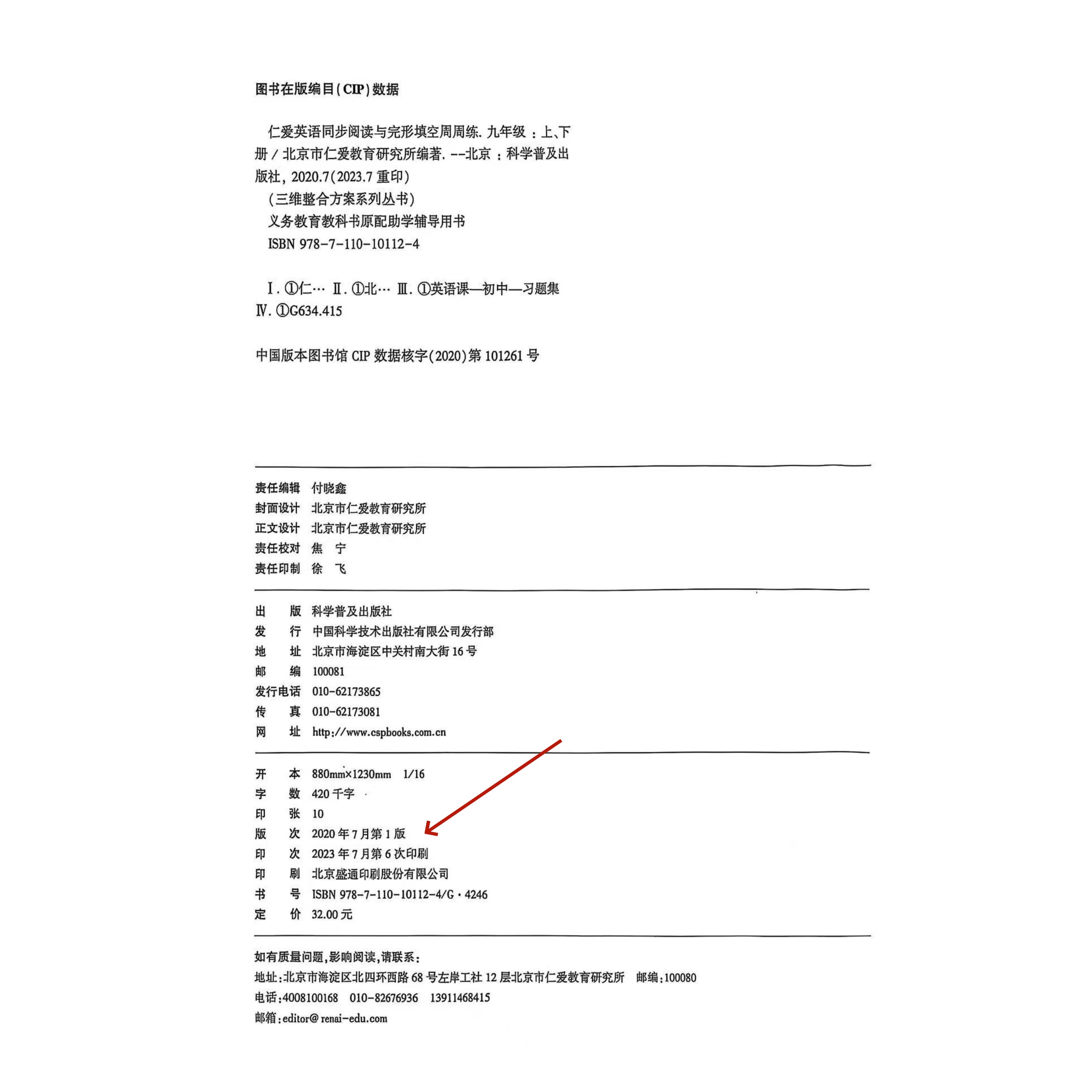 2025版 仁爱英语 同步阅读与完形填空周周练 九年级上下册合订本 正版阅读理解重点词汇英语同步阅读周周练科学普及出版社