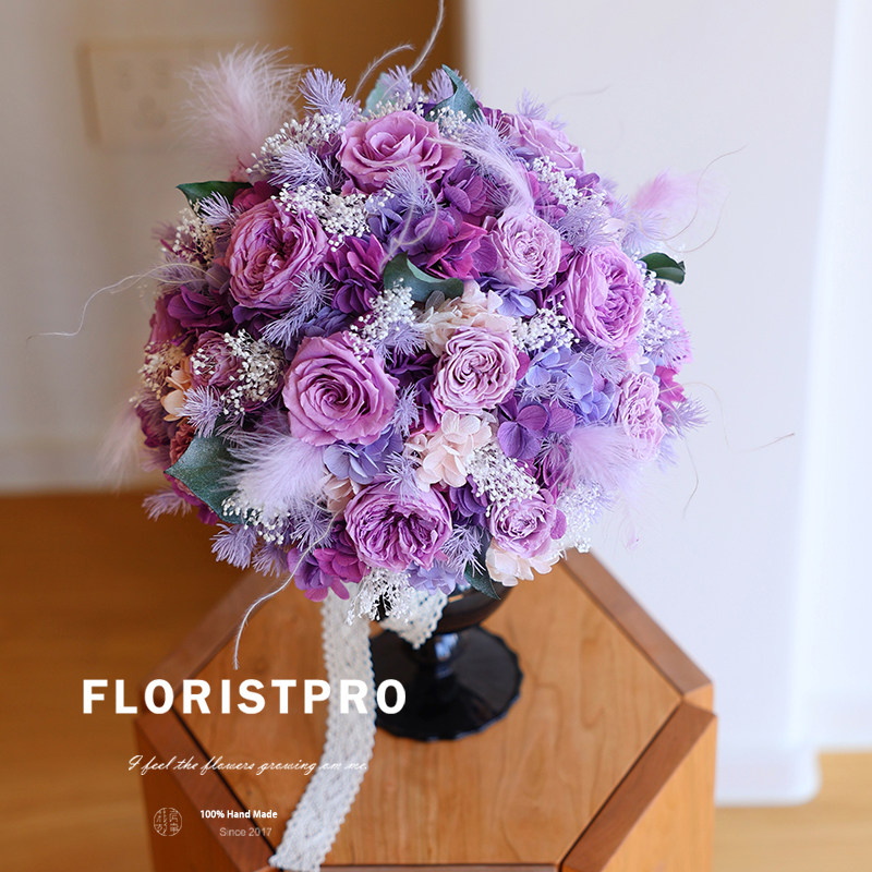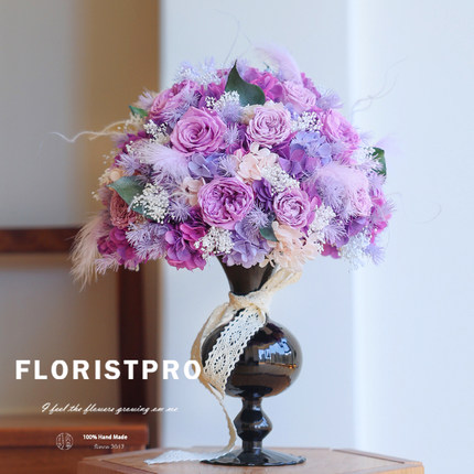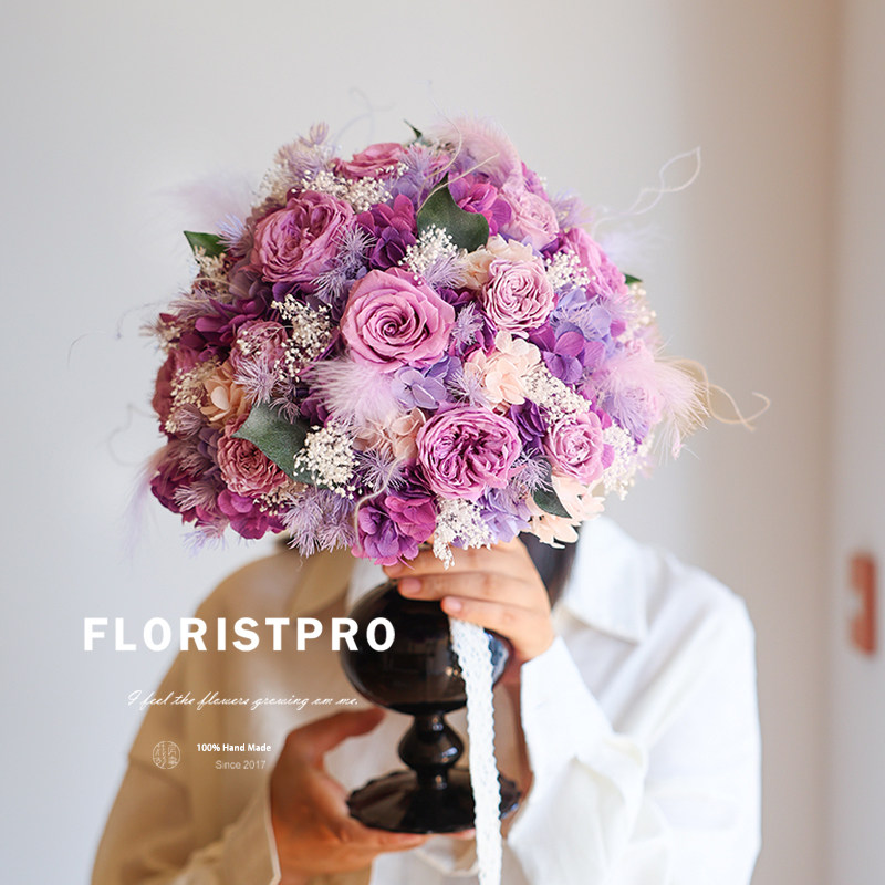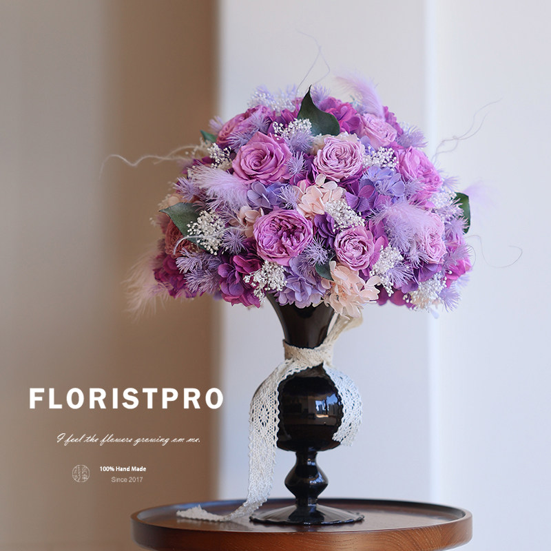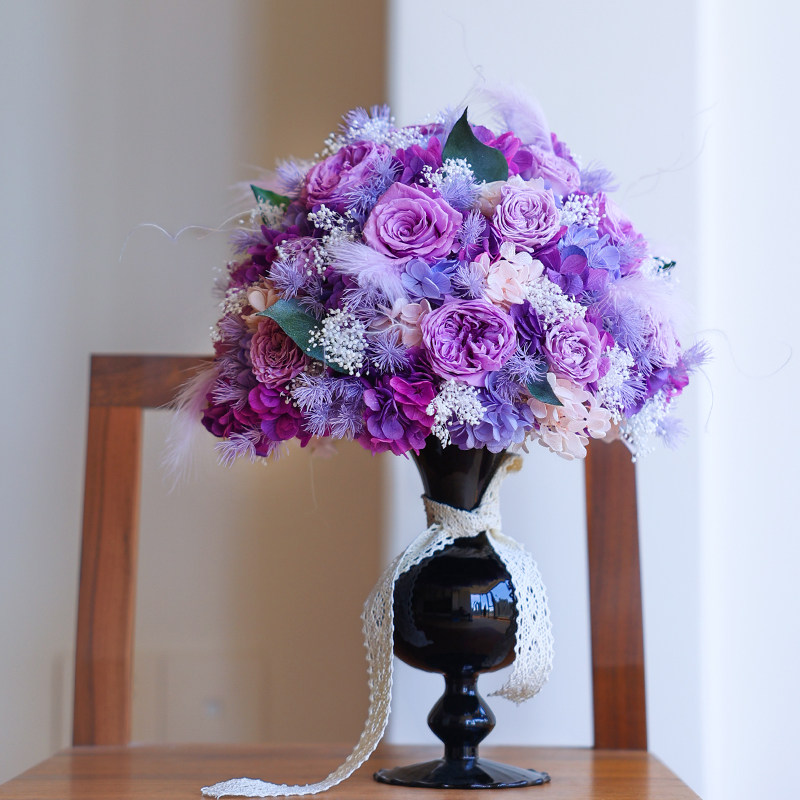 日本进口大地奥斯汀永生紫玫瑰花束瓶花婚礼纪念求婚室内装饰摆件