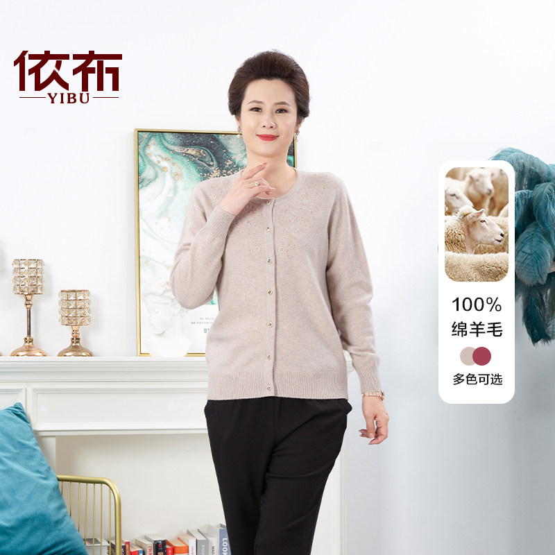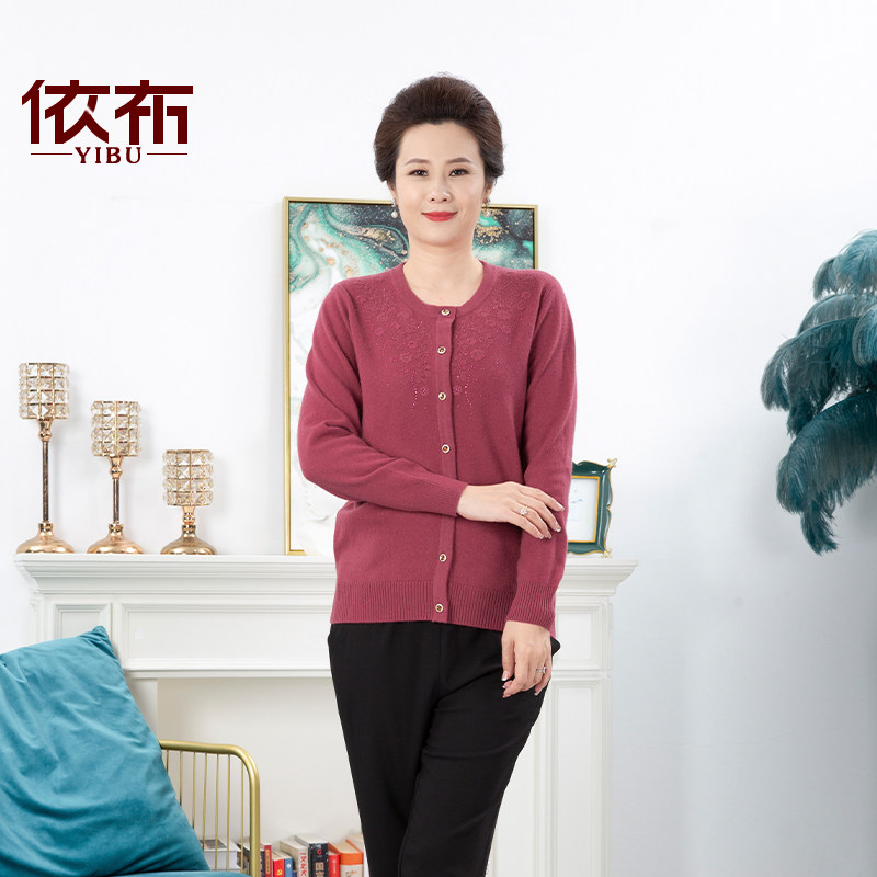 依佈2025冬装新款中老年妈妈装针织开衫加绒加厚保暖大码外套上衣