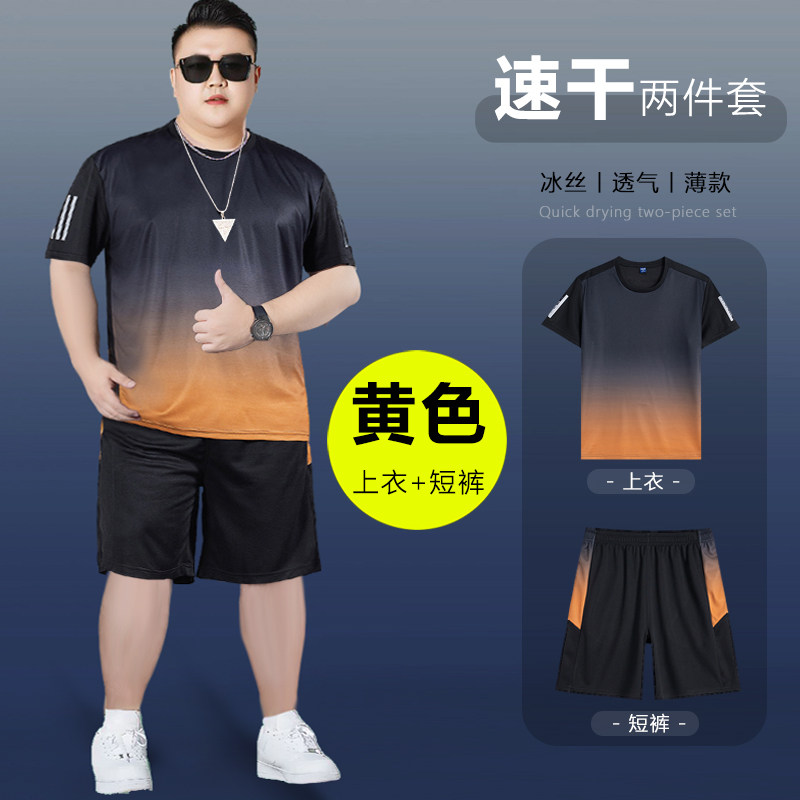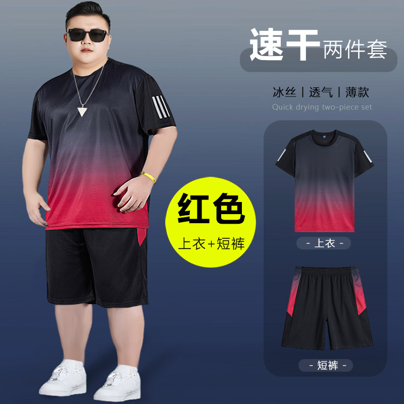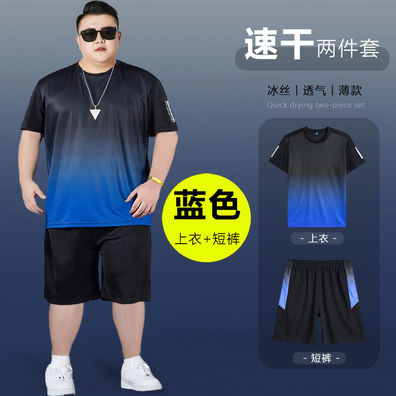 肥胖300斤夏季速干t恤短袖套装男士加大码休闲运动跑步健身两件套