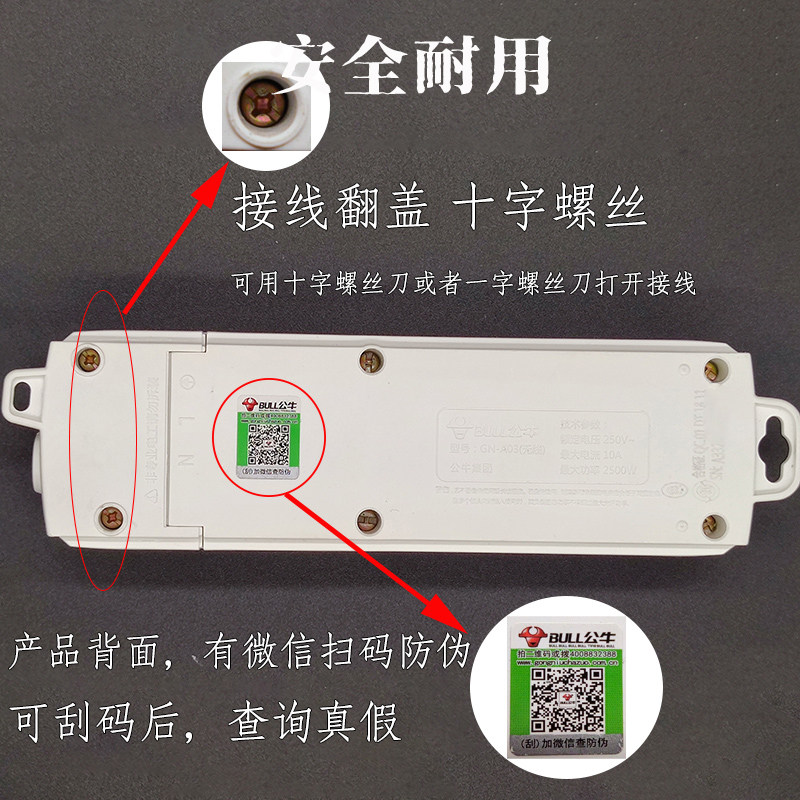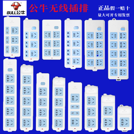 公牛接线板多位无线移动插座带保护门安全拖线板多孔多功能插排