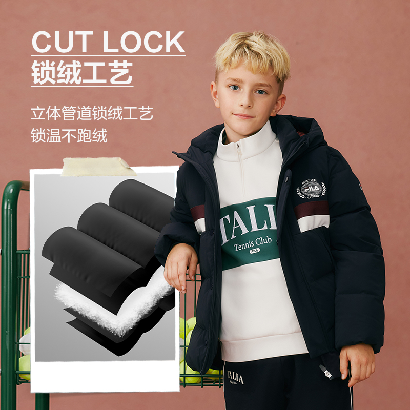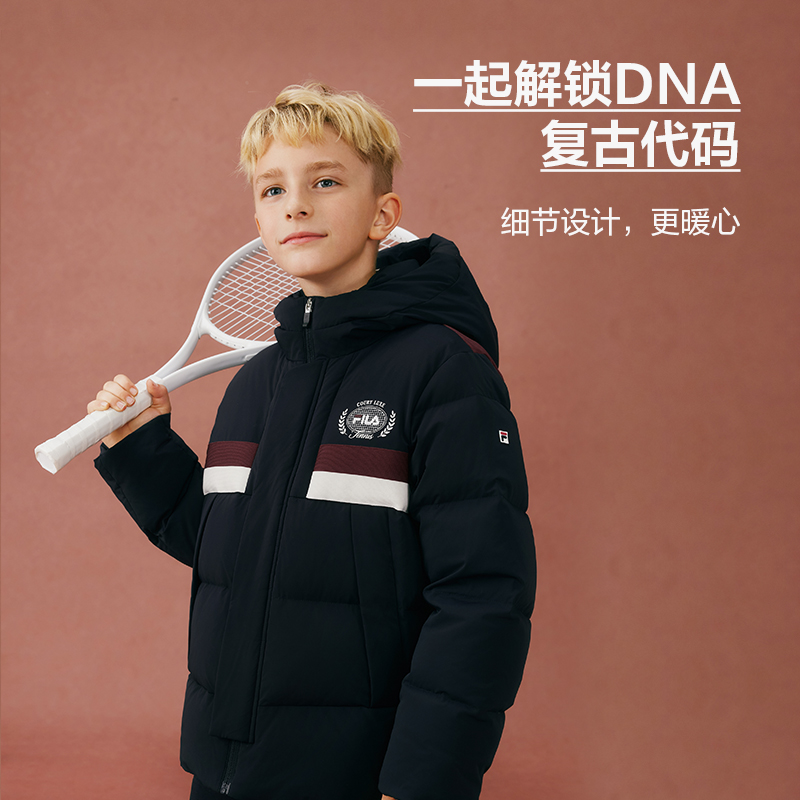 FILA斐乐儿童羽绒服男童2025年冬季新款运动外套中大童面包服校服