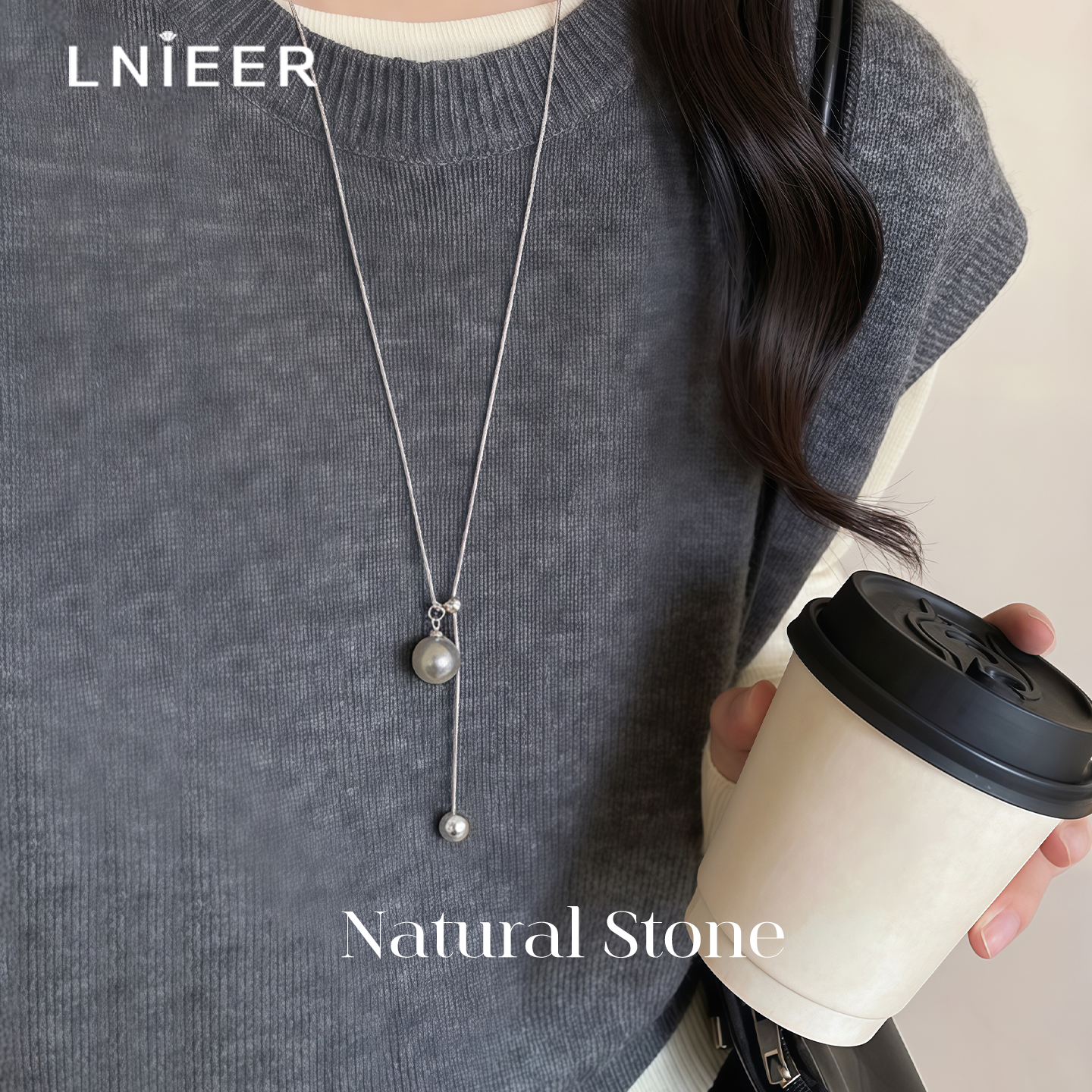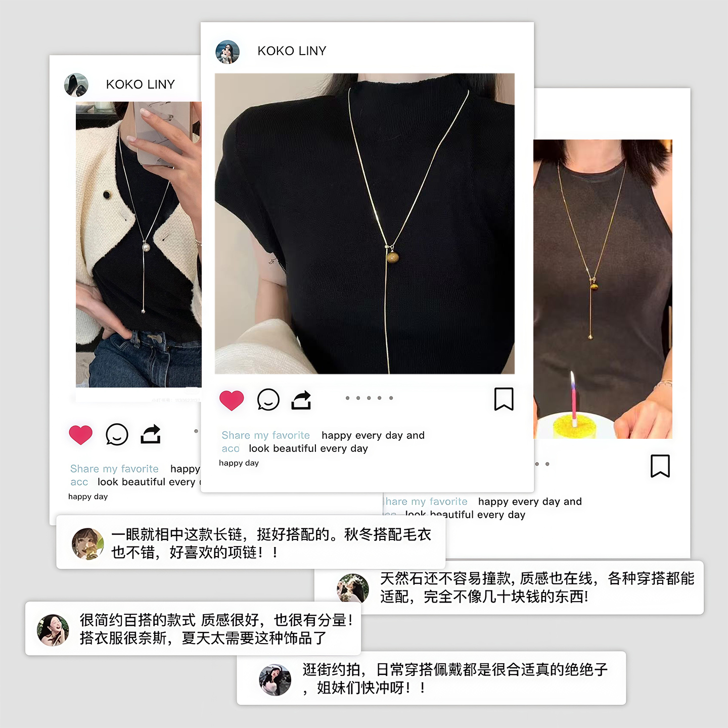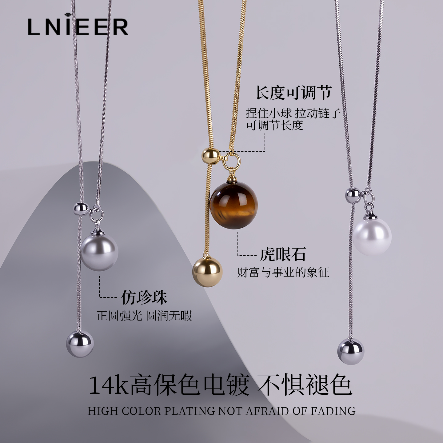 美拉德虎眼石长款毛衣链女款小众设计感百搭项链2025秋冬高级配饰