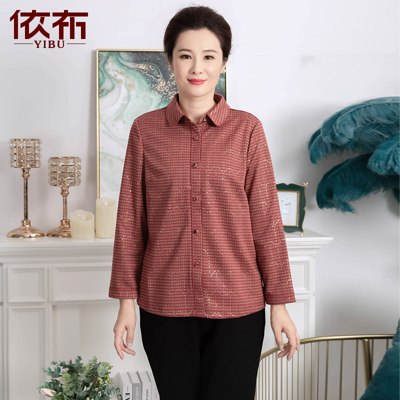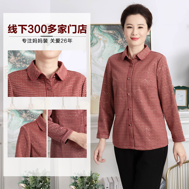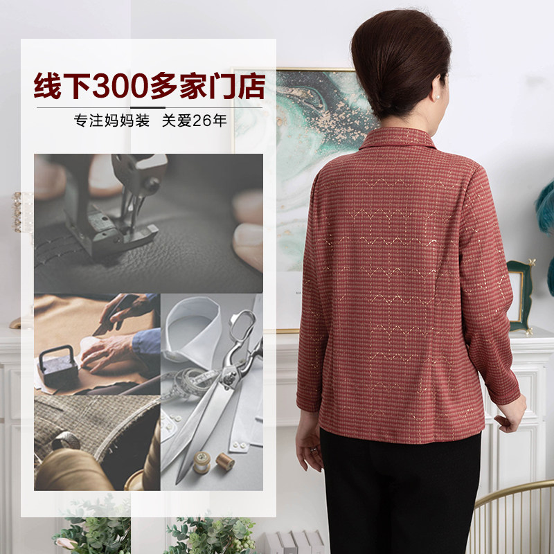 依佈妈妈装2024春装格子衬衫时尚烫金印花开衫中老年女士减龄上衣