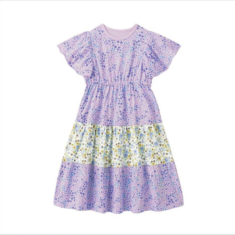 夏季女童纯棉连衣裙碎花拼接短袖裙子沙滩裙女宝宝洋气薄款淑女裙