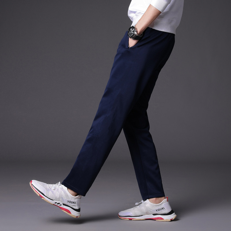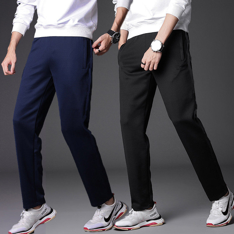 加绒纯色校服裤子男女松紧腰直筒中学生黑色N上班裤蓝色大码工作