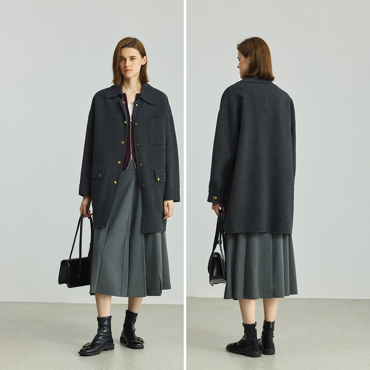 【100%羊毛】商场同款LILY2025秋新款巴恩风双面呢毛呢大衣外套女
