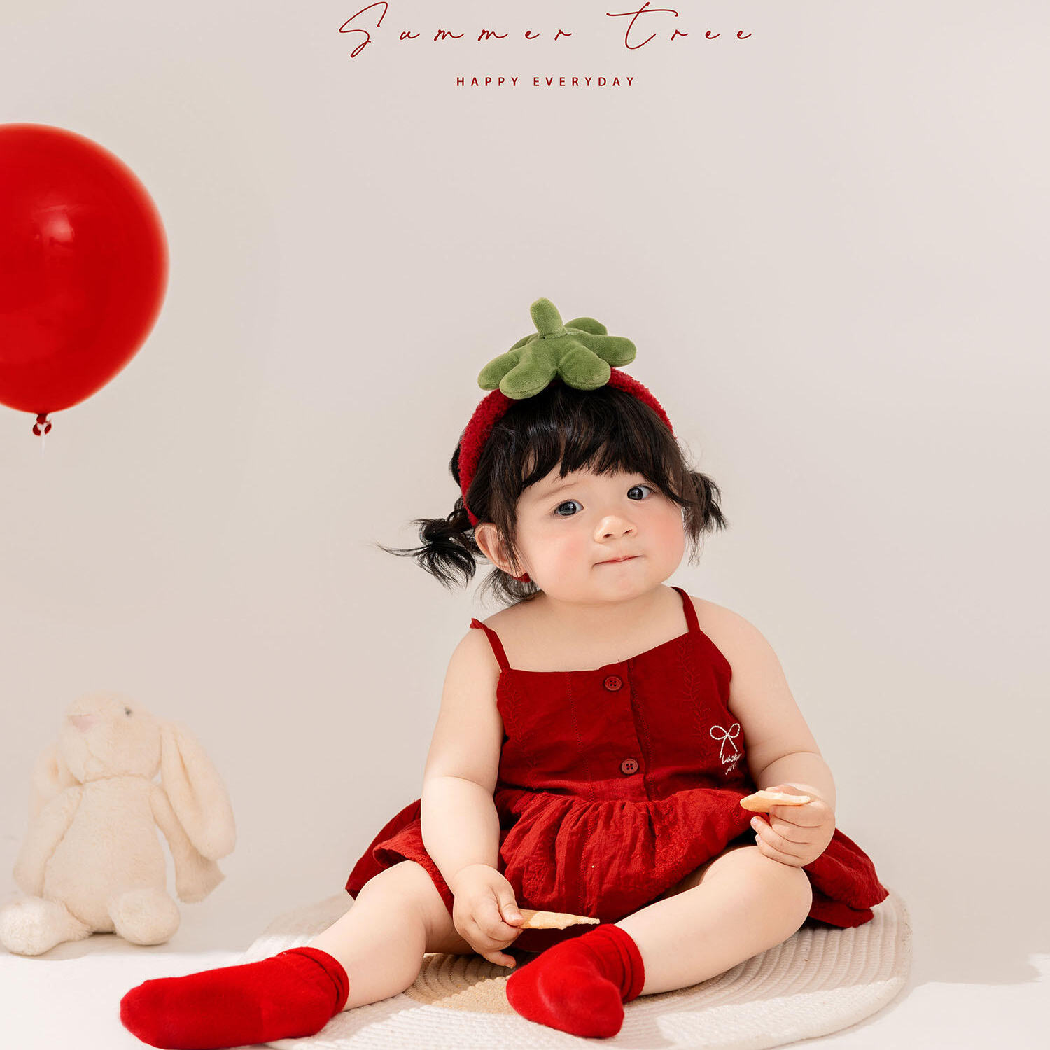 儿童摄影服装影楼拍照夏天红色系草莓女孩主题套装宝宝周岁照道具