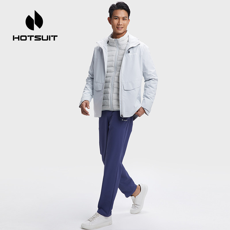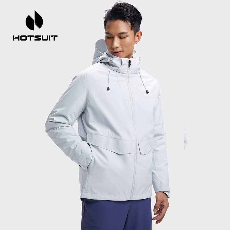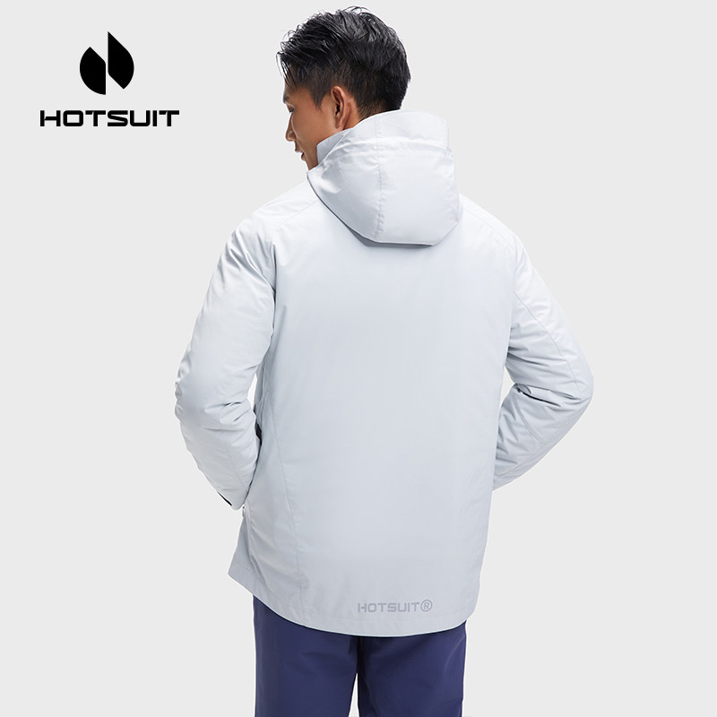 hotsuit后秀风衣男2026春季新款加厚保暖连帽防风羽绒外套两件套