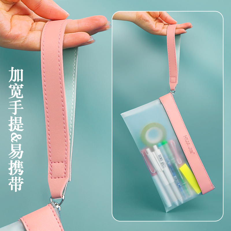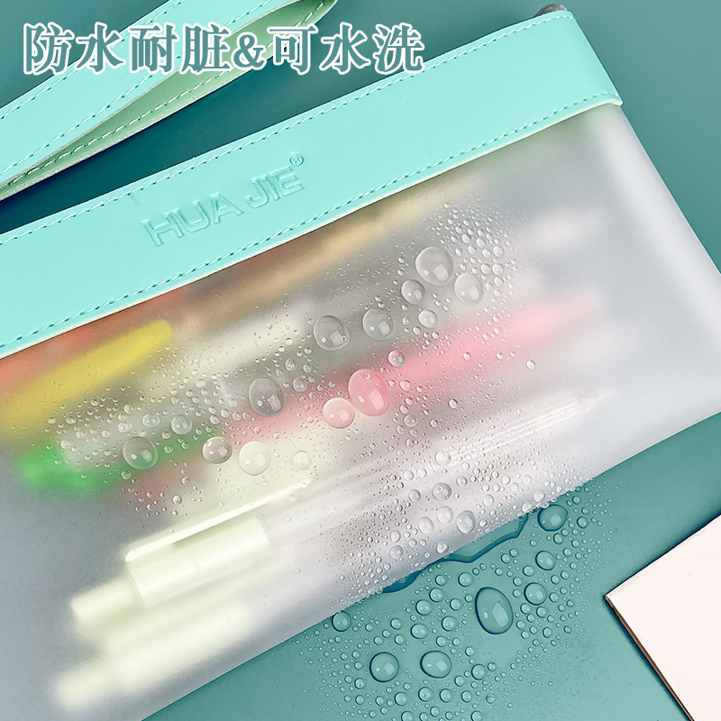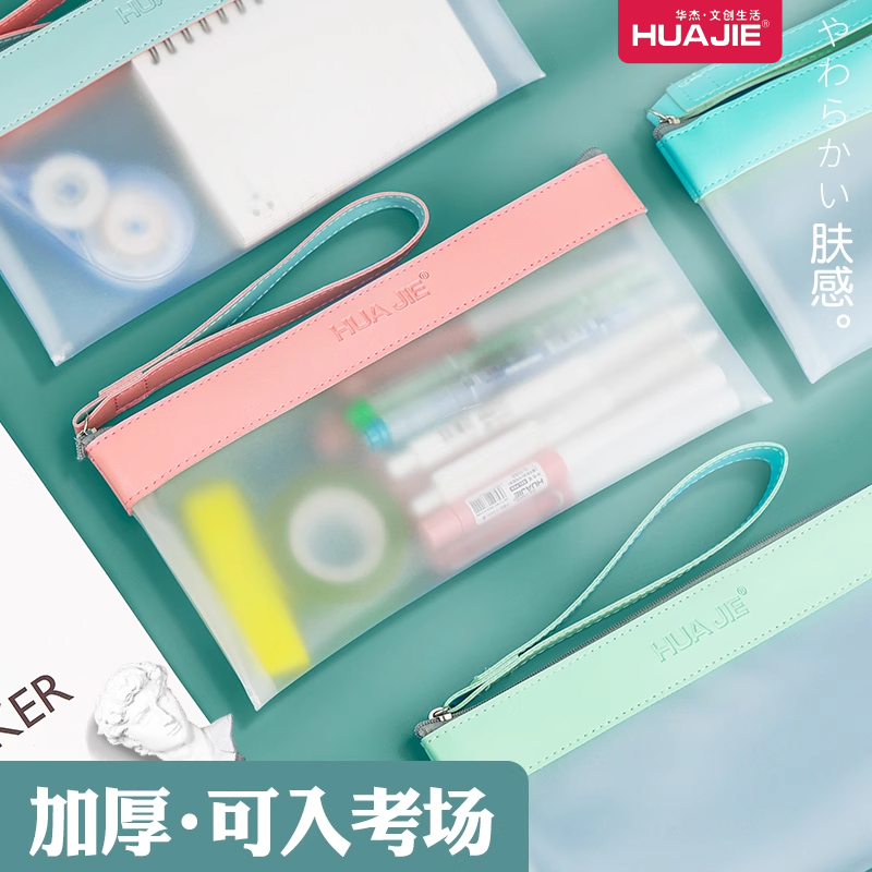 华杰磨砂透明笔袋中高考用笔袋中学生简约大容量文具盒男孩女孩铅笔盒加厚防水可入考场拉链式手提文具袋