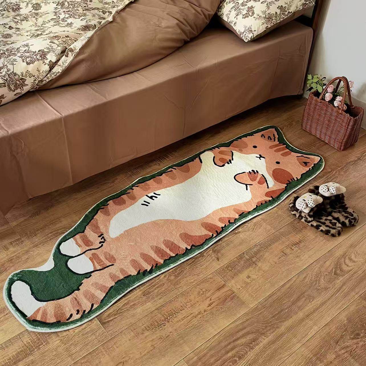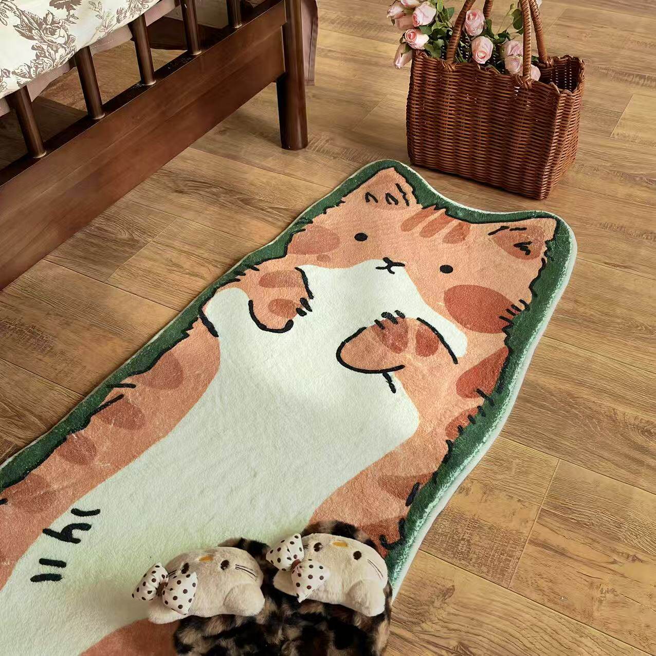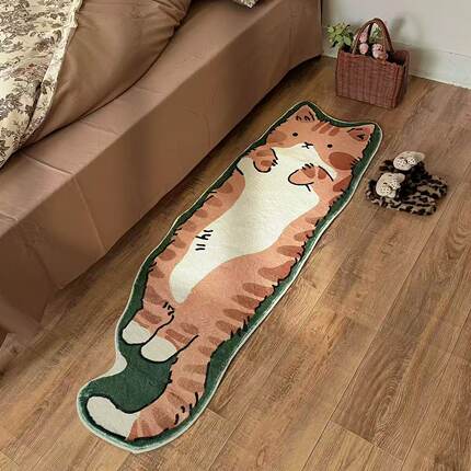 可爱橘猫造型卧室地毯 卡通萌趣猫咪床边毯 家用客厅长条地垫