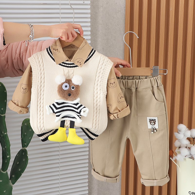 男童秋装套装2024新款儿童春秋季毛衣马甲洋气男宝宝衬衫三件套潮