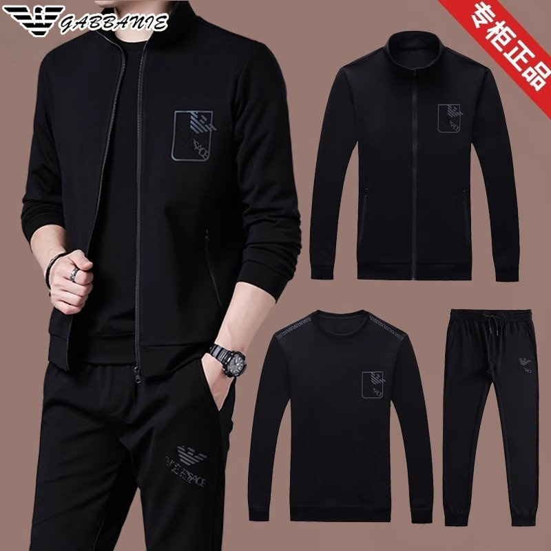 正品意大利运动中年男士套装春秋季韩版立领外套男休闲跑步三件套
