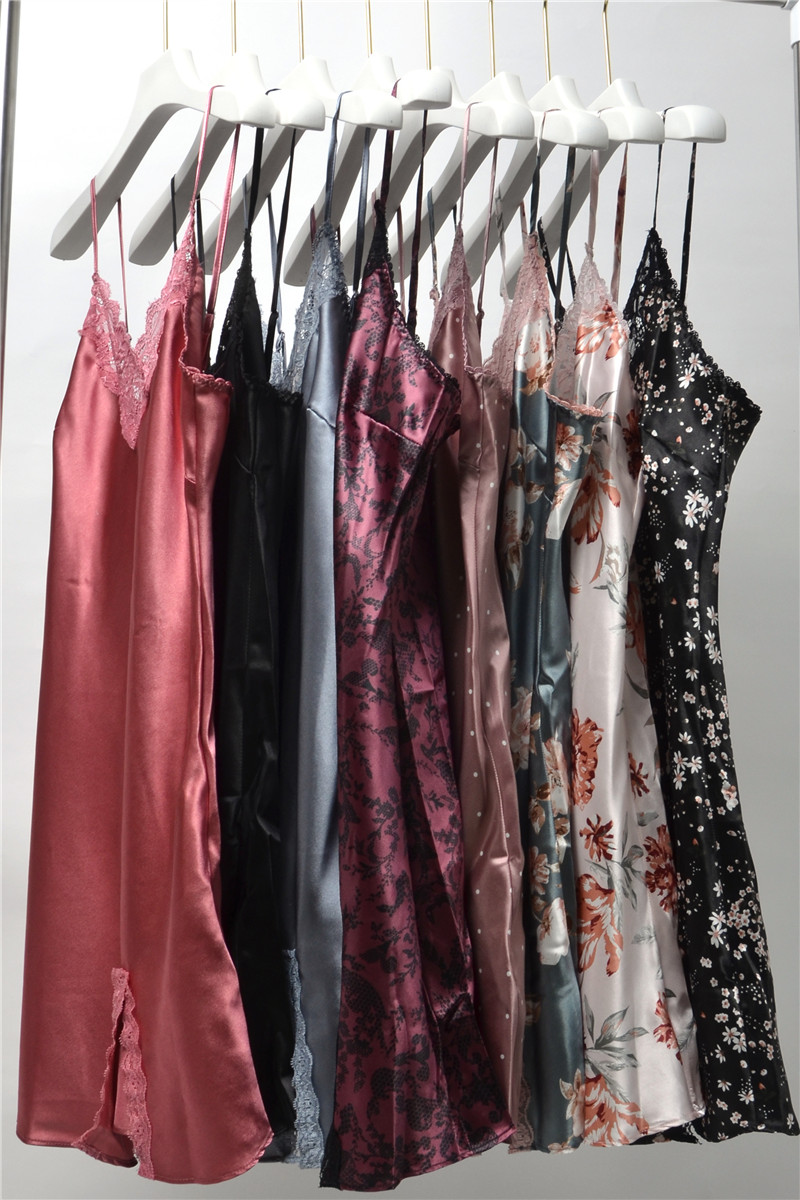 性感睡衣女士夏季款蕾丝吊带短裙纯色印花仿真丝家居服时尚睡裙