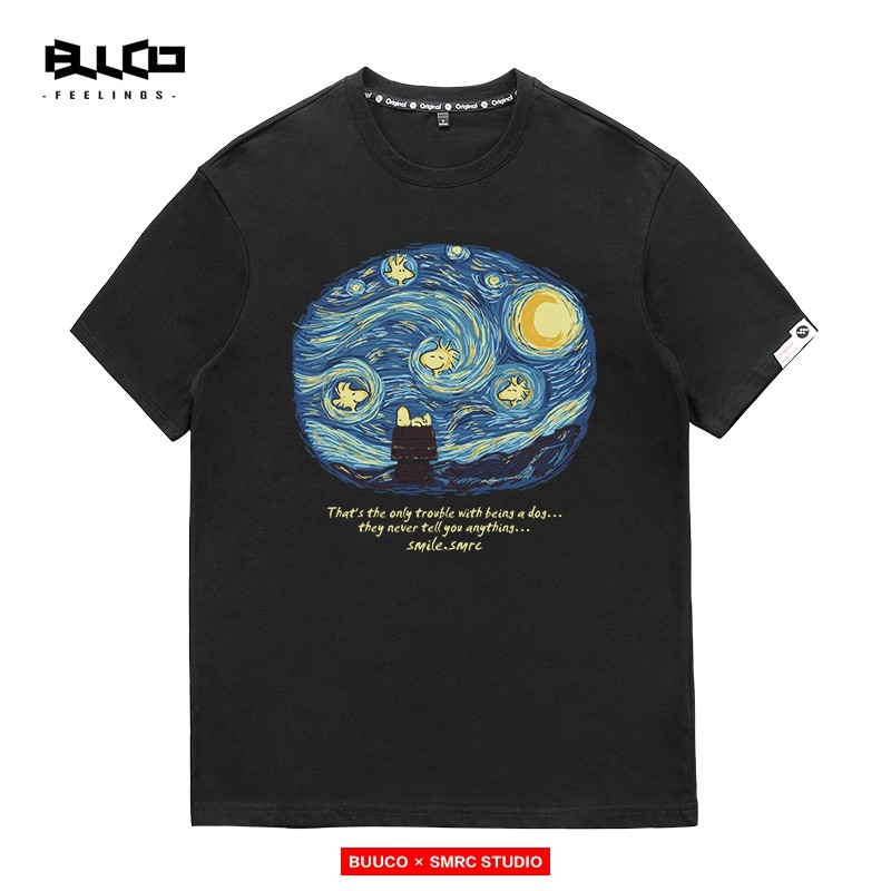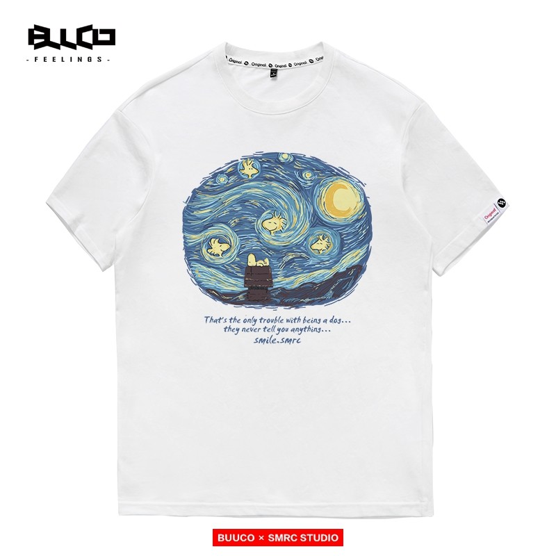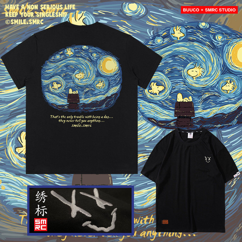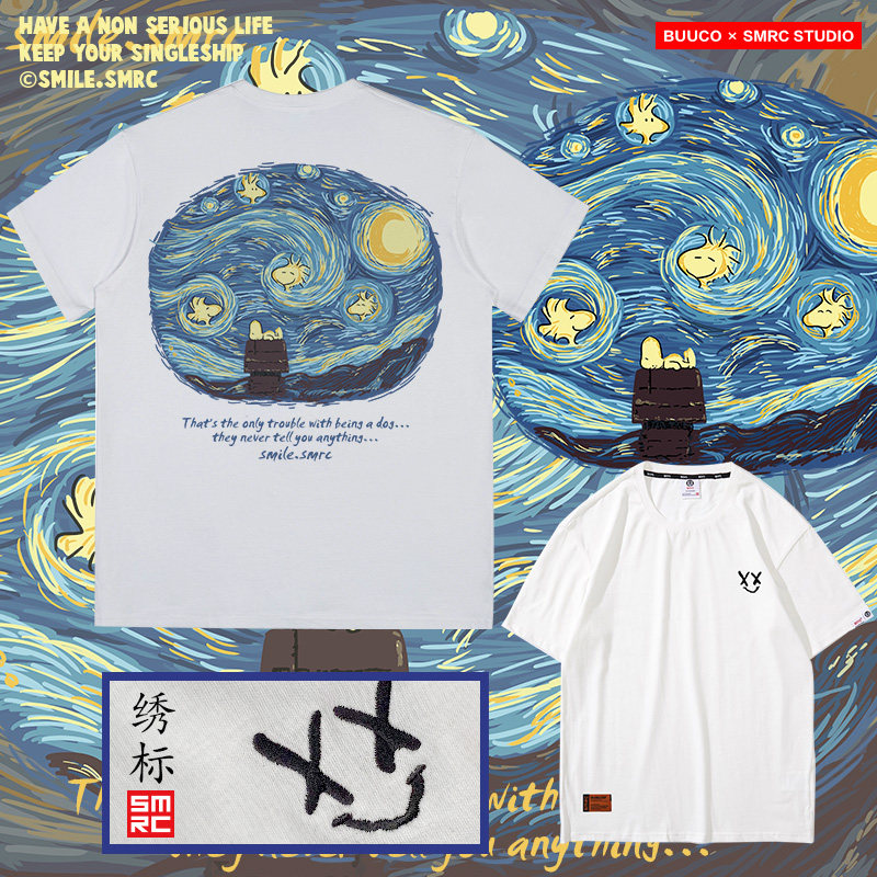 nasa星空联名款史努比卡通纯棉印花t恤男欧美ins白色情侣装半袖女