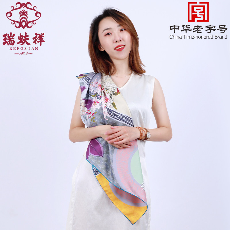 瑞蚨祥原创桑蚕真丝丝巾女方巾披肩双面异色围巾送妈妈教师节礼盒
