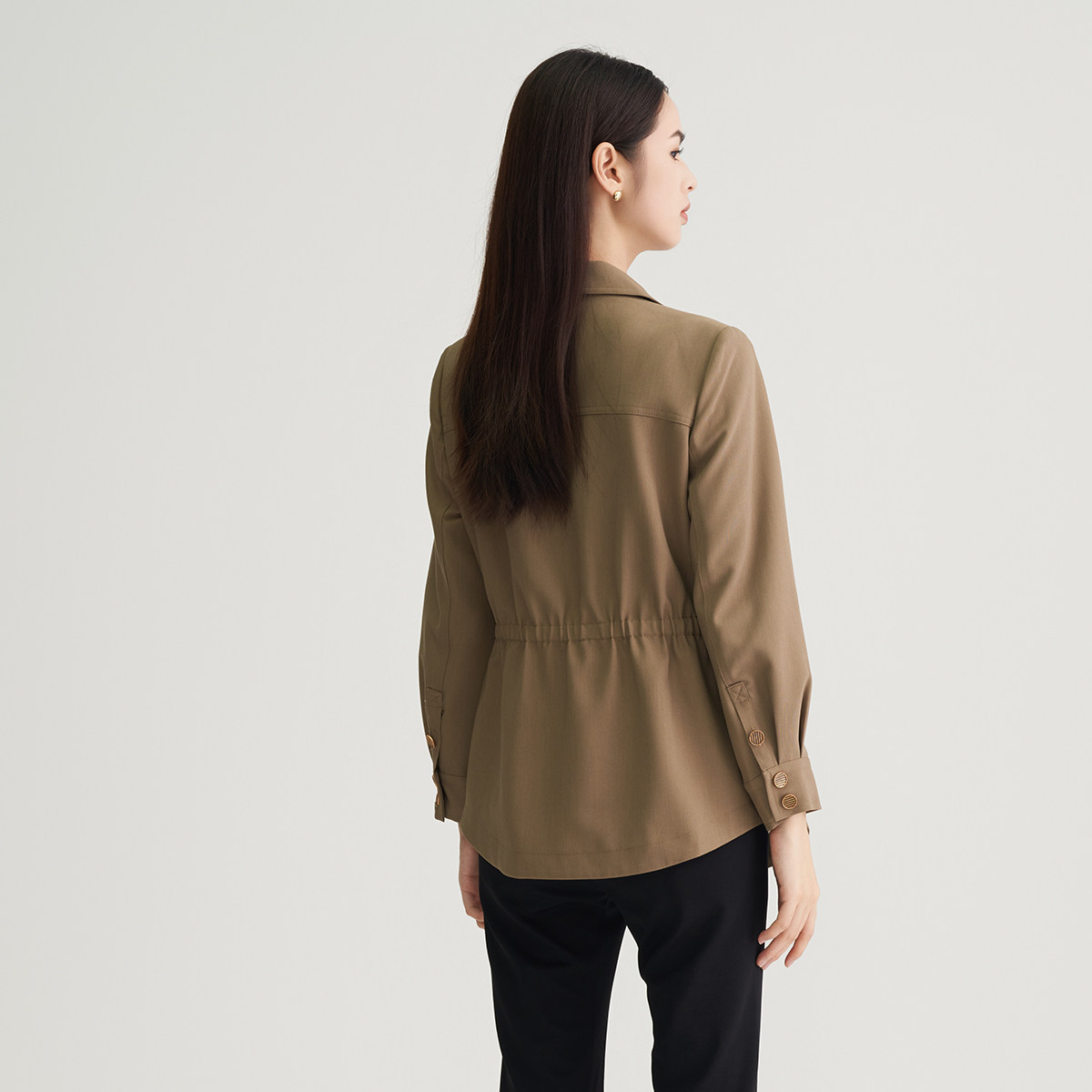 马天奴春夏新款卡其色翻领收腰短款风衣外套通勤时尚气质百搭女装
