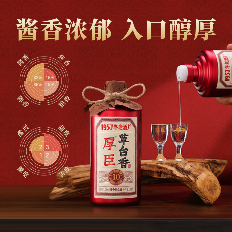 厚臣草台香10酒 贵州酱香型白酒送礼高粱小麦纯粮食酿造53度酱酒