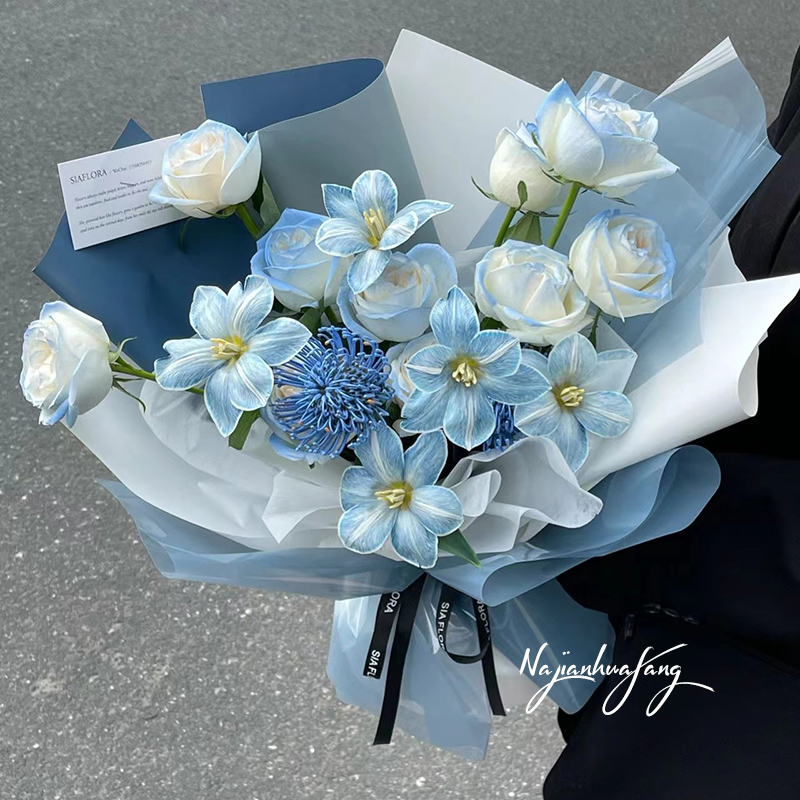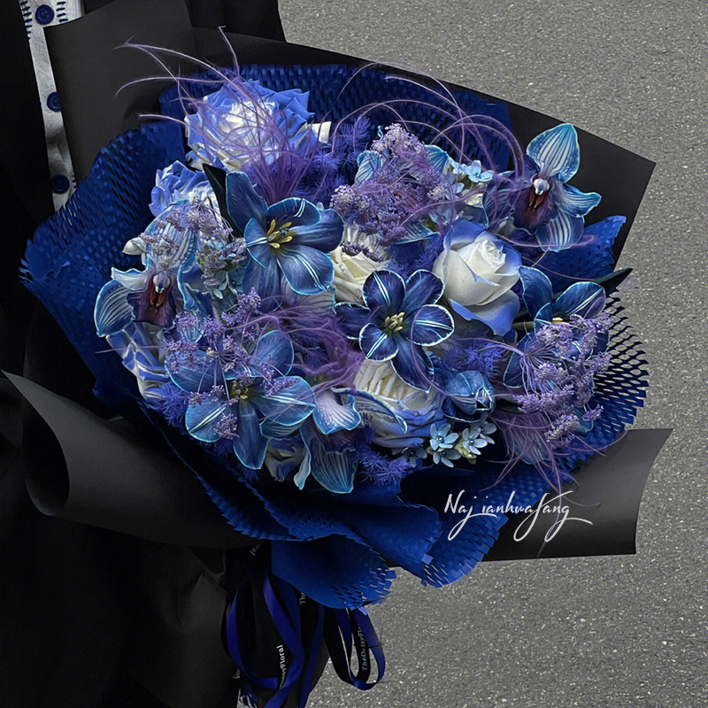 进口墨尔本午夜蓝郁金香玫瑰花束上海鲜花速递女友生日送花男朋友