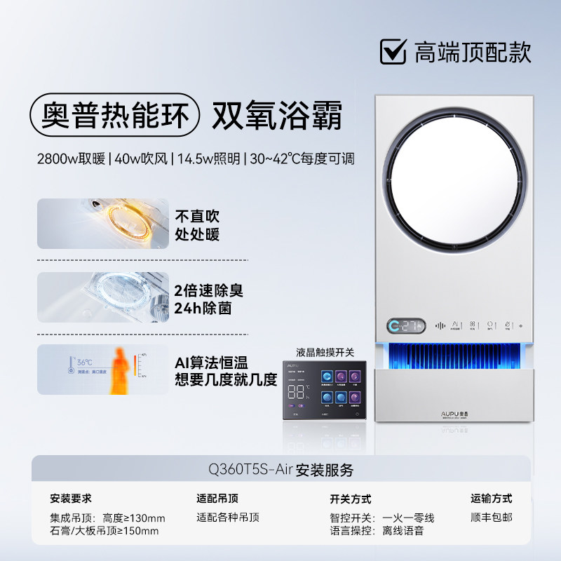 奥普热能环双氧浴霸风暖集成吊顶排气照明除菌除臭 Q360T5S-Air