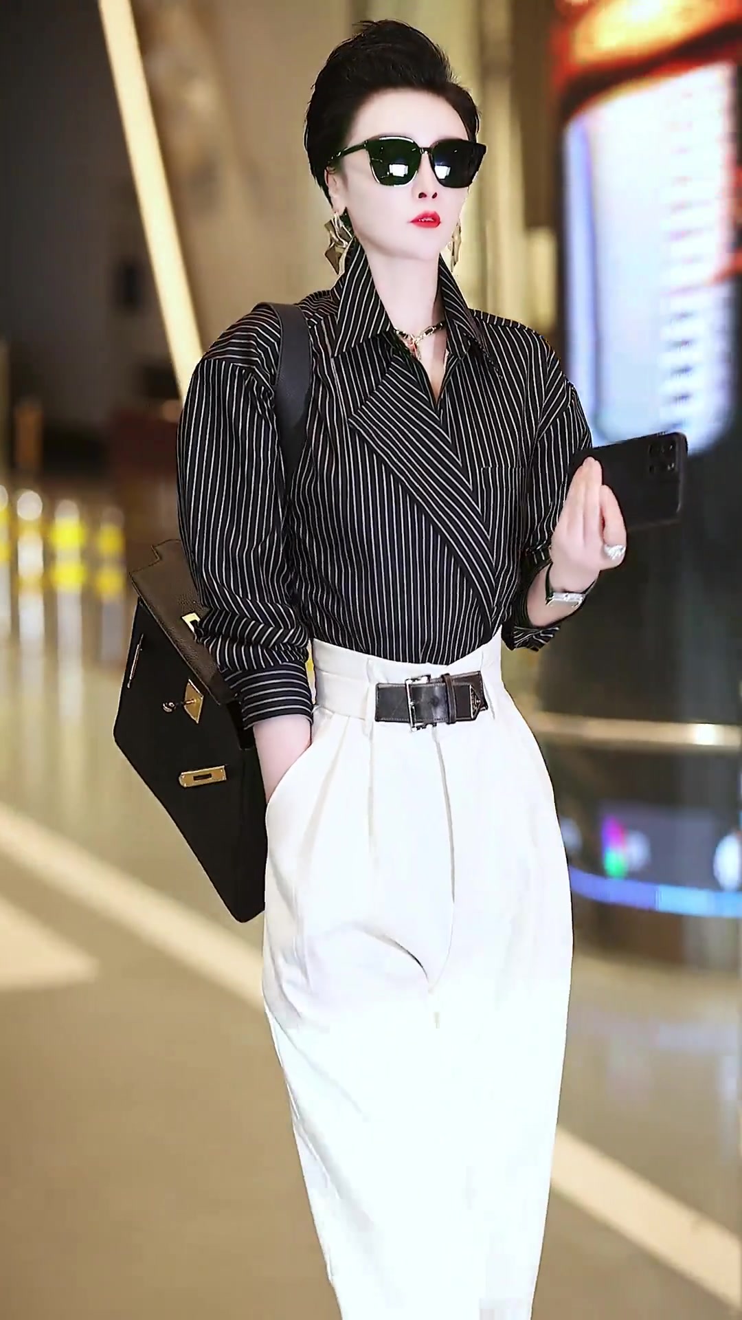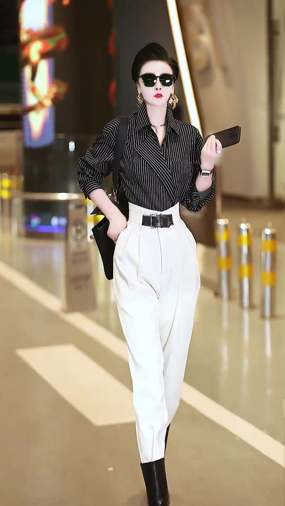 欧货爆款时尚气质高级感两件套女冬季韩版条纹衬衫高腰休闲裤套装