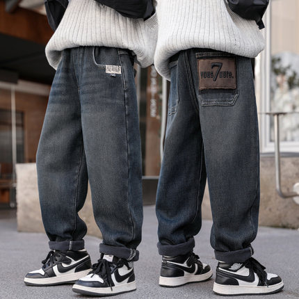 男童牛仔裤2025冬季新款加绒加厚直筒孩春秋装中大童裤子儿童长裤