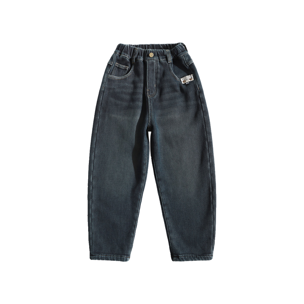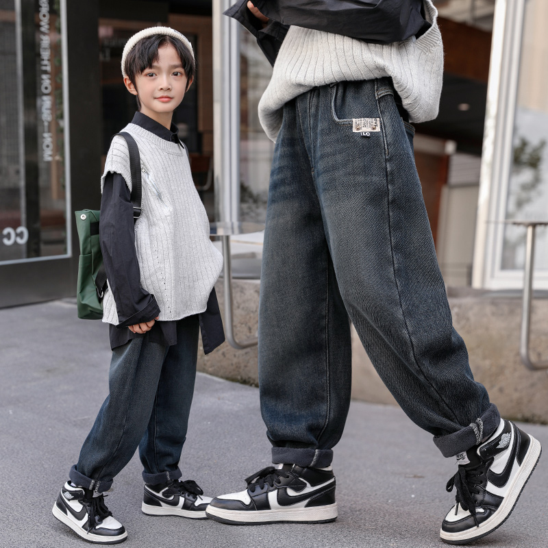 男童牛仔裤秋冬加绒加厚直筒帅气