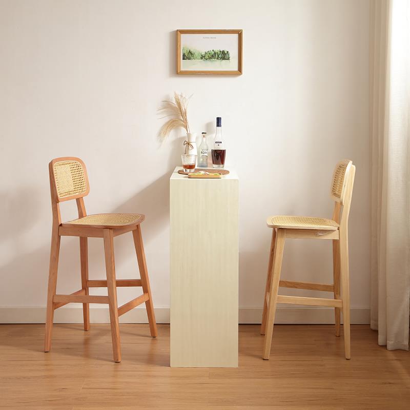 北欧实木吧台椅藤编吧椅家用岛台椅设计师椅侘寂风酒吧靠背高脚凳