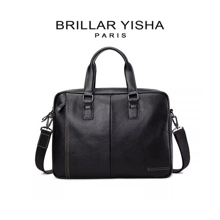 法国BRILLAR YISHA通勤手提包男真皮商务休闲公文包单肩斜挎包