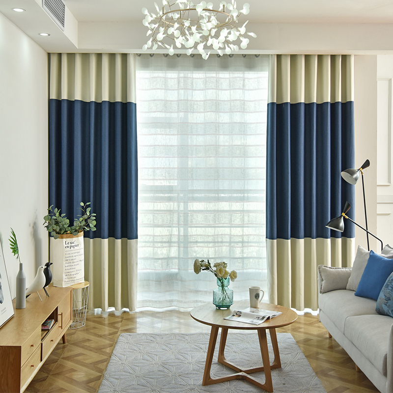 简约现代加厚全遮光黄色灰色窗帘纱帘成品布料客厅卧室飘窗定制
