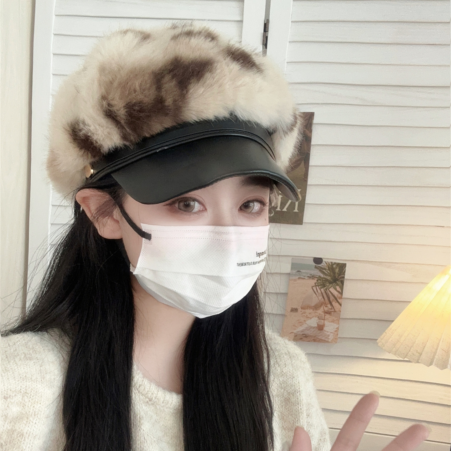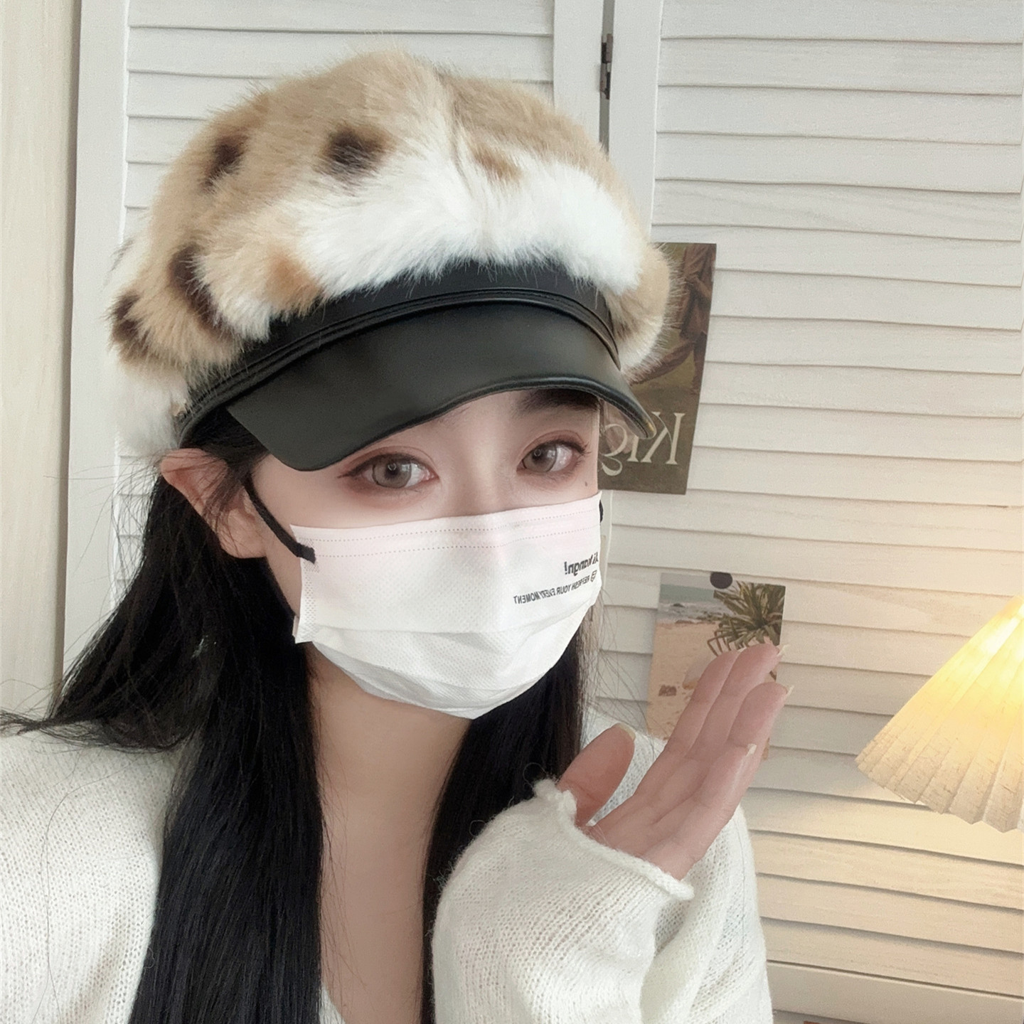 秋冬保暖豹纹气质毛绒鸭舌帽子女