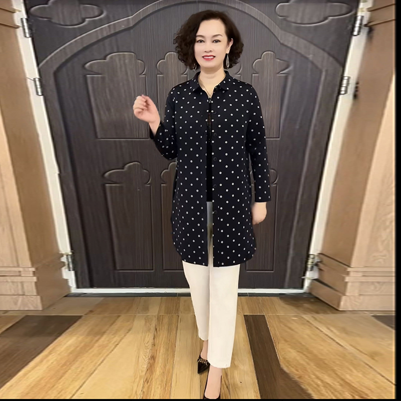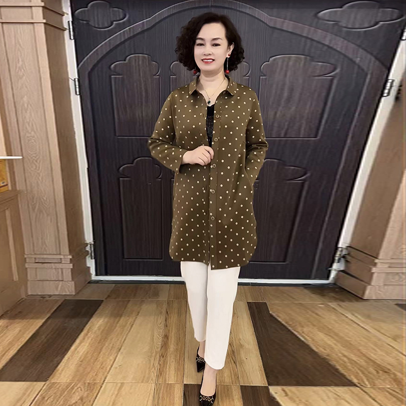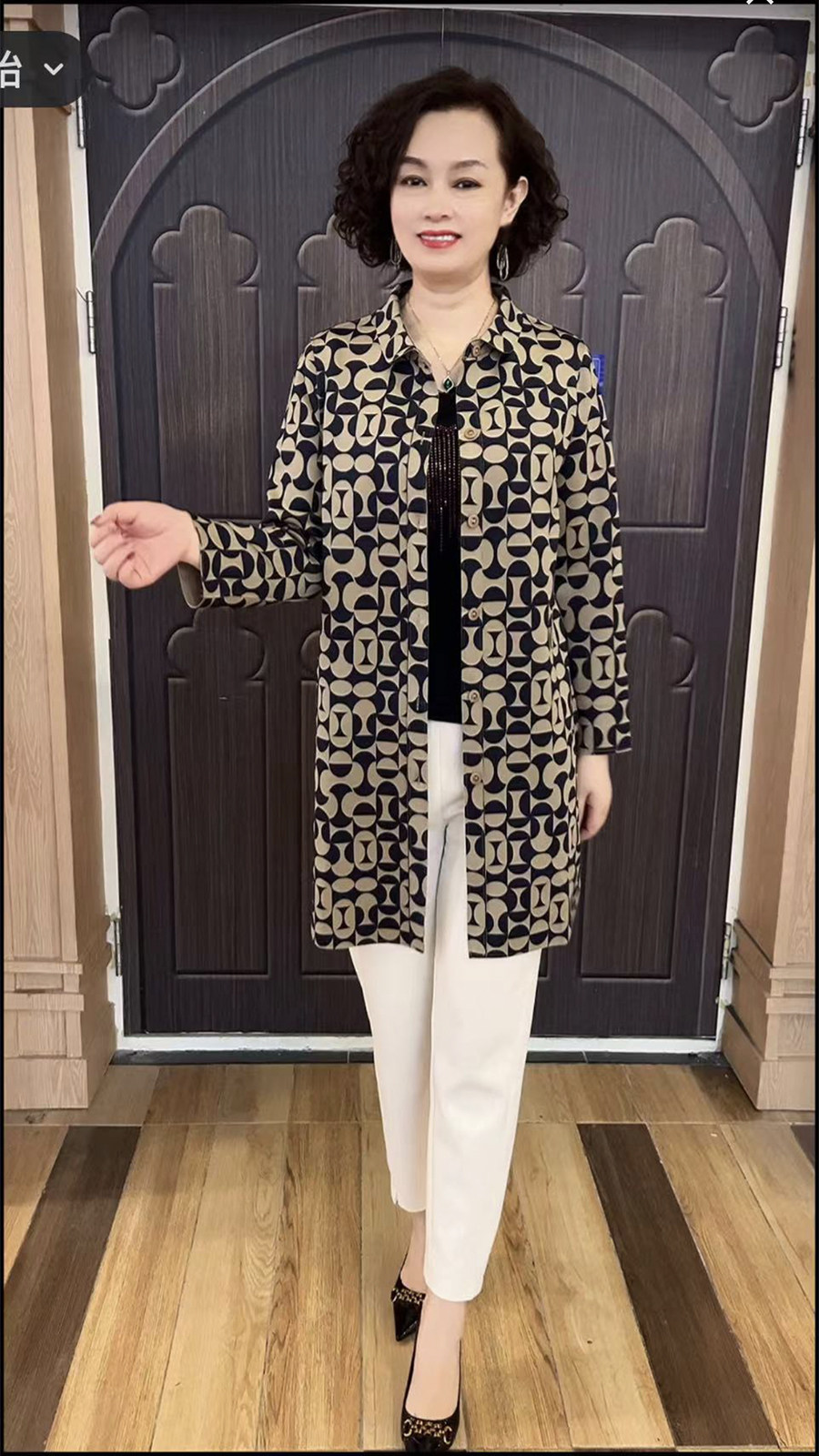 中老年妈妈风衣春装新款空气棉格子外套宽松大码娃娃领减龄上衣女