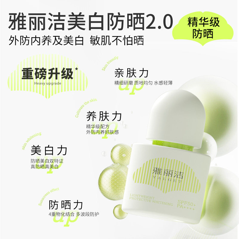 雅丽洁美白防晒霜乳女水感清爽夏日防紫外线敏感肌正品
