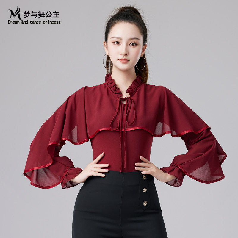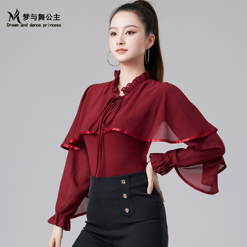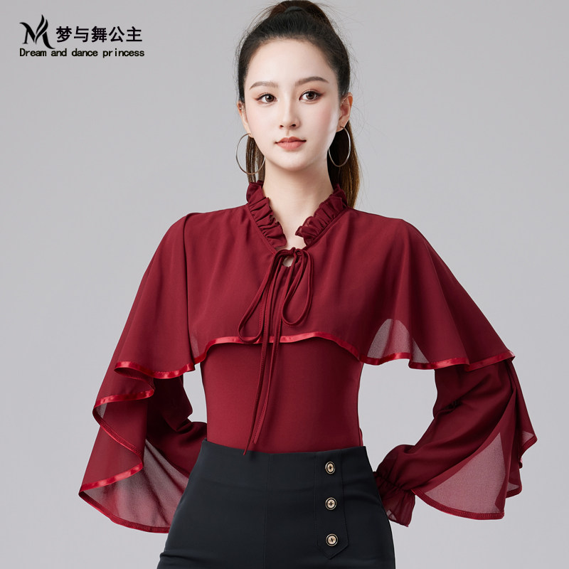 2025新款国标舞服摩登舞华尔兹舞衣交谊舞拉丁舞女上衣飘逸舞蹈服