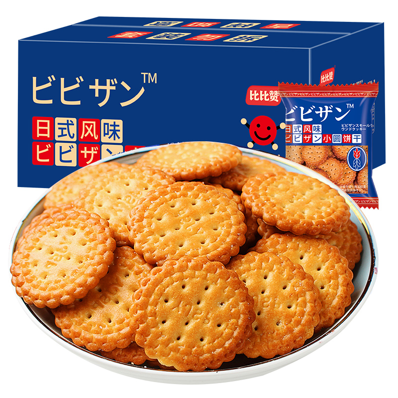 比比赞日式小圆饼干海盐整箱散装网红小零食休闲食品解馋小吃批发