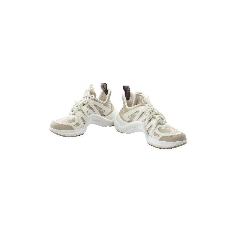 中古LV路易威登女B级9新sneakers运动鞋绒面革小牛皮鞋浅褐色复古