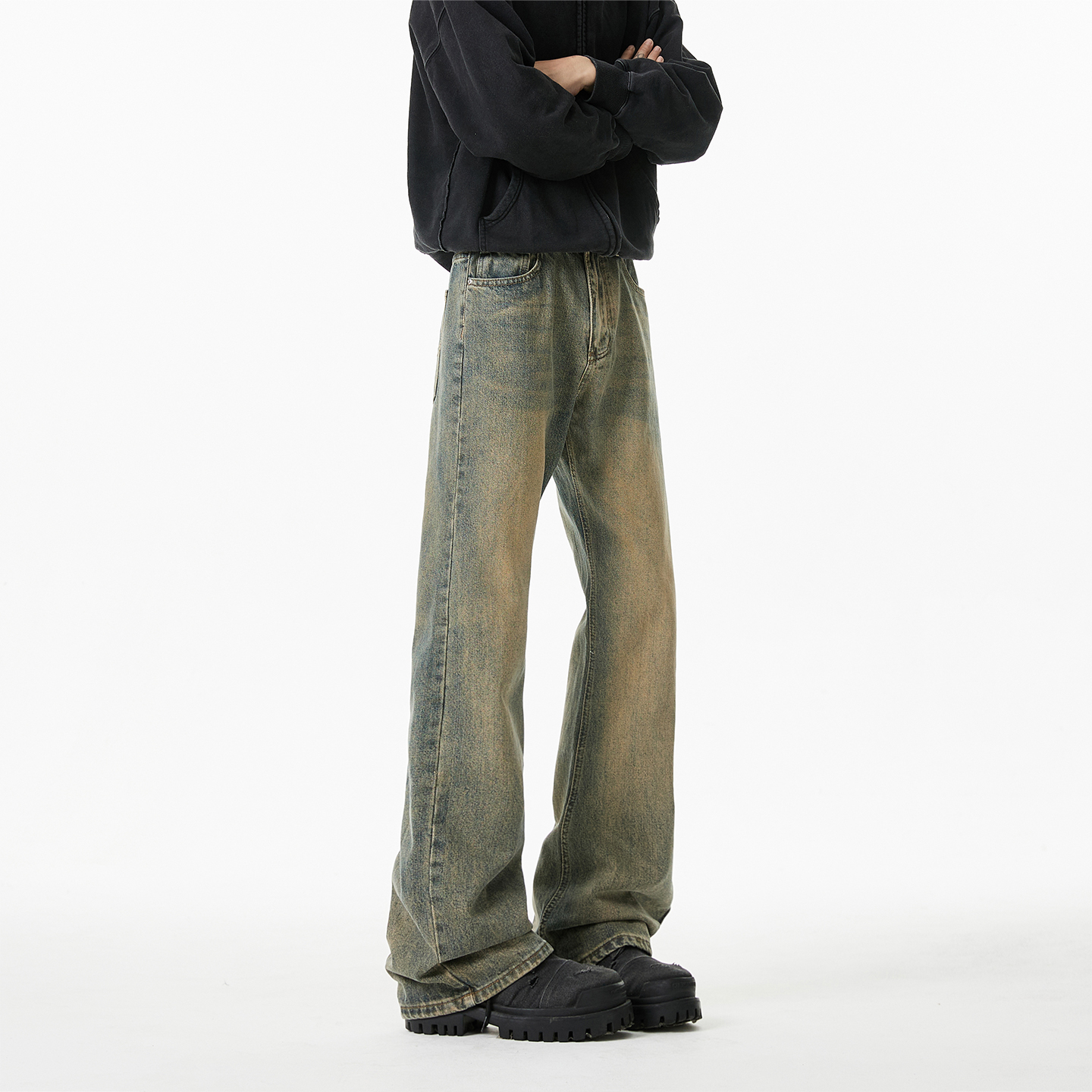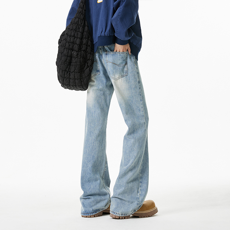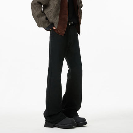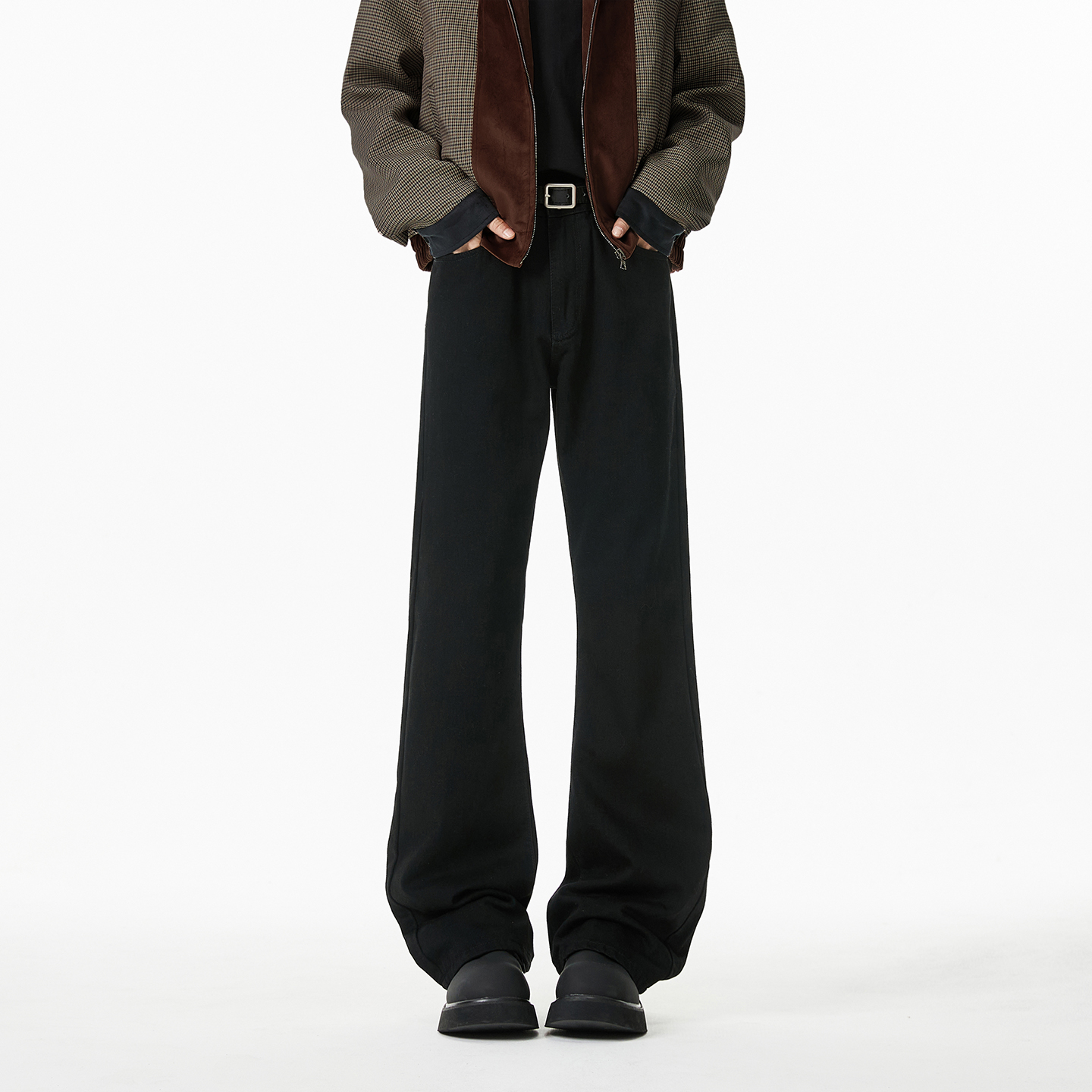 回手掏黑色弯刀牛仔裤男款秋季美式cleanfit微喇裤修身直筒长裤子