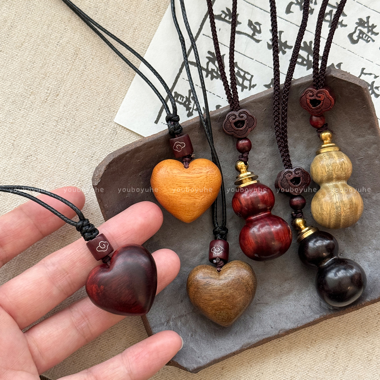 新中式檀木葫芦爱心长款项链女复古民族风挂绳吊坠毛衣链装饰配饰