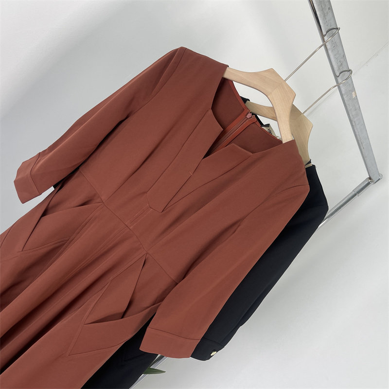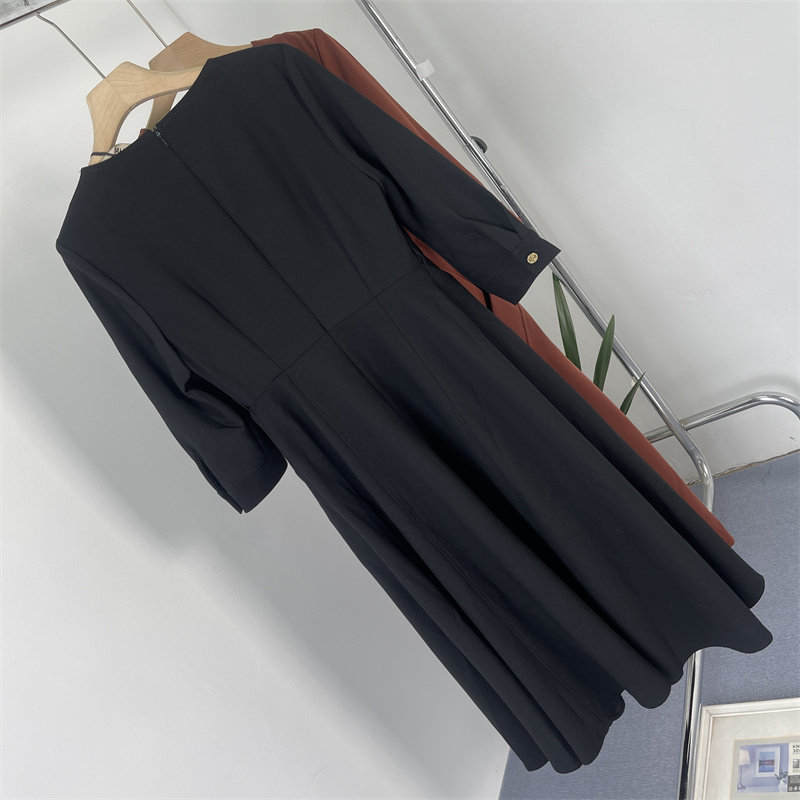 小众柜定制余单 简约百搭OL风小V领修身大码长袖连衣裙