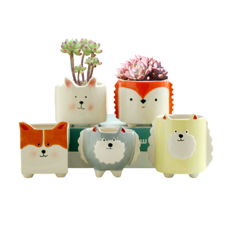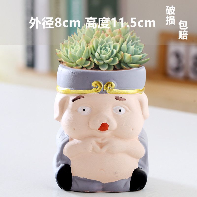 多肉小花盆陶瓷特价清仓卡通小号可爱专用盆陶土托盘机器人花园