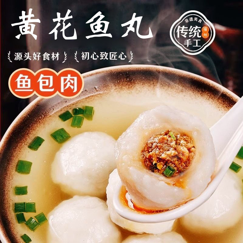 福建特产宁德手工黄花鱼丸包心鱼丸配料表干净鱼圆丸子火锅食材