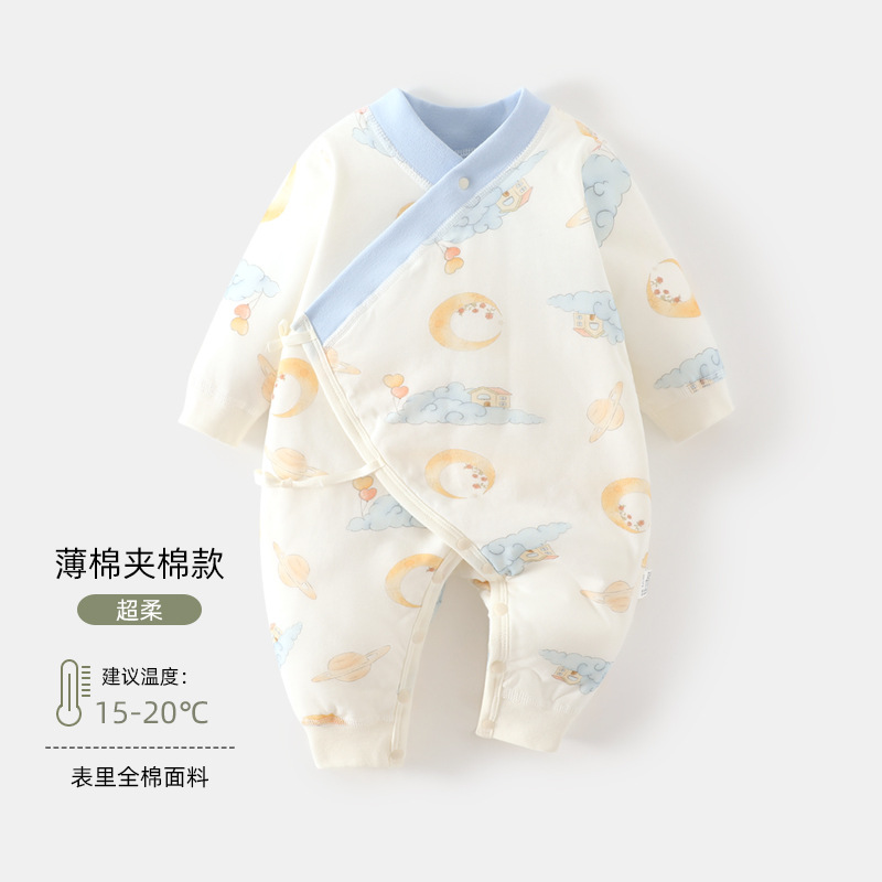 初生婴儿薄棉连体衣春秋外套新生儿夹棉衣服秋冬男女宝宝秋装哈衣