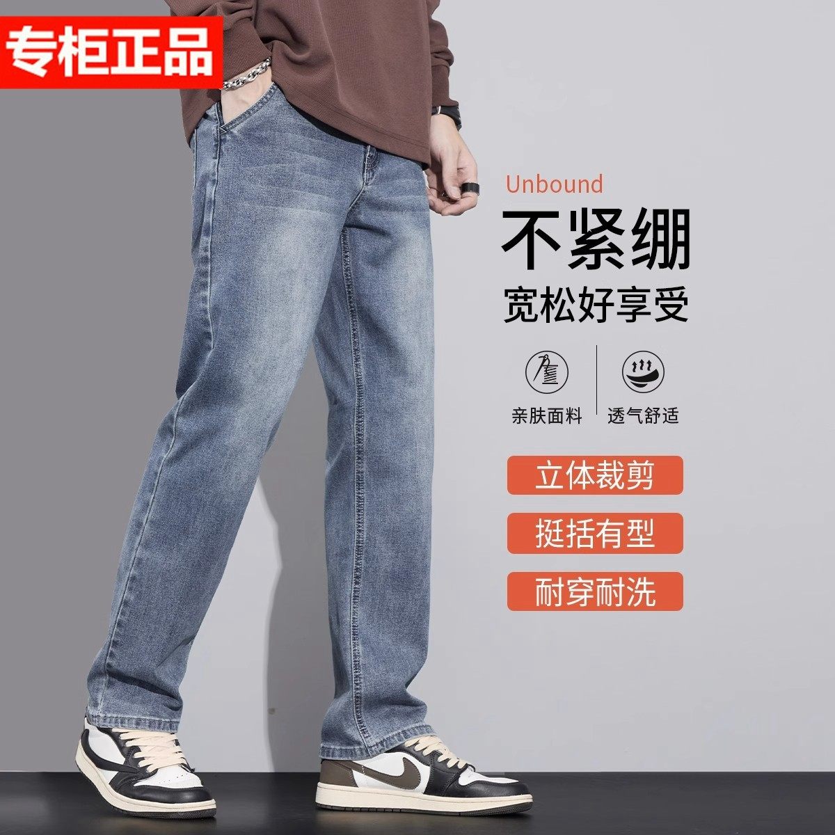 Yishion以纯男装正品官店牛仔裤男款秋冬款加绒加厚宽松直筒专卖