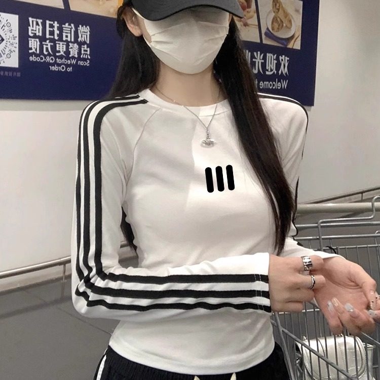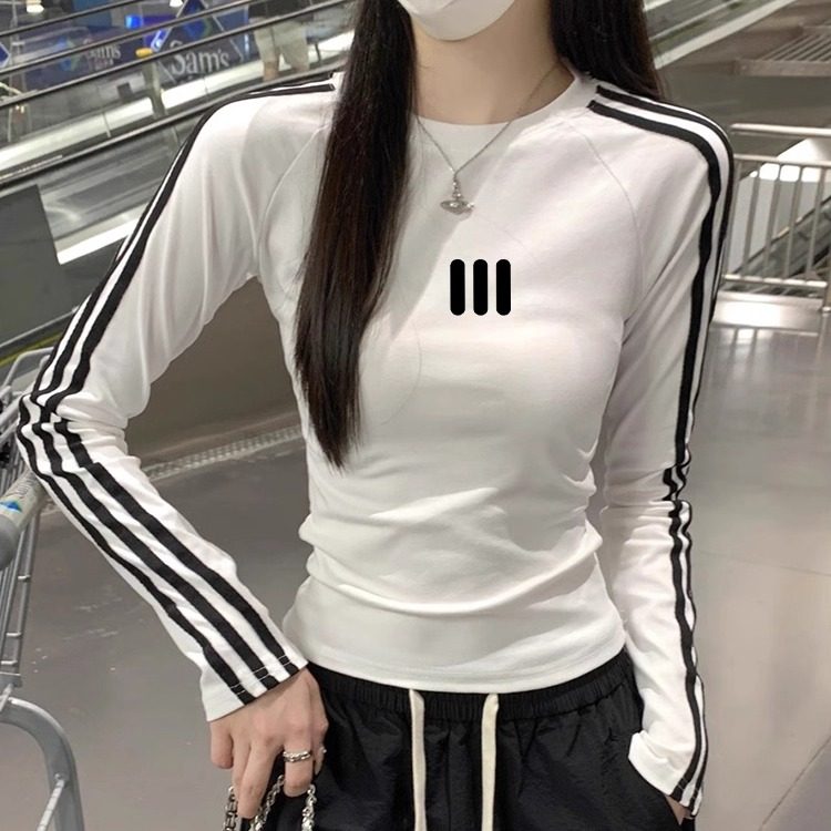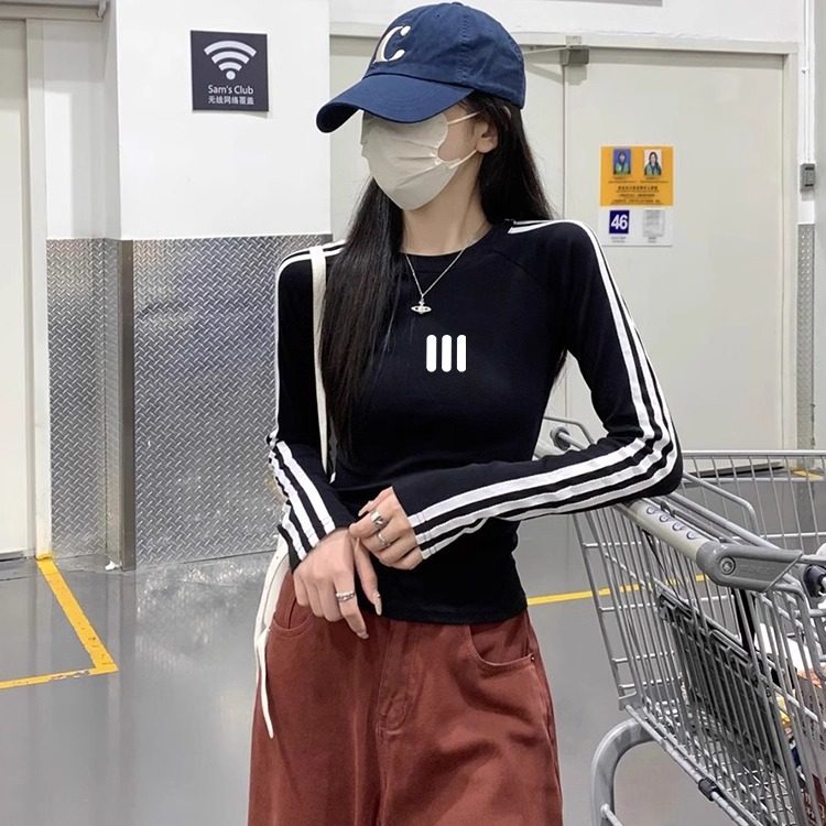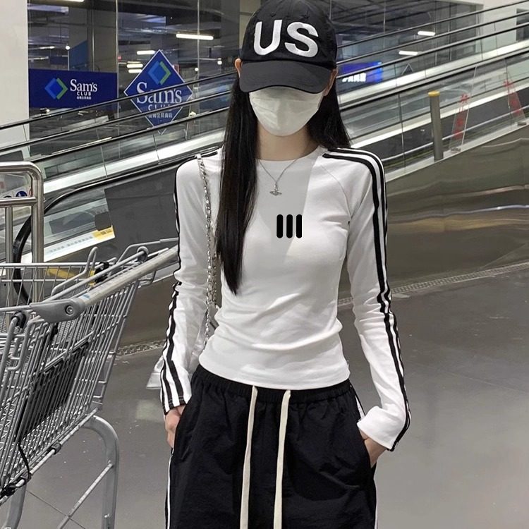 美式复古辣妹正肩三条杠T恤女秋季修身掐腰打底衫超好看长袖上衣