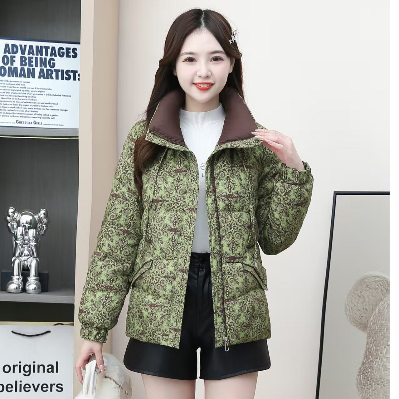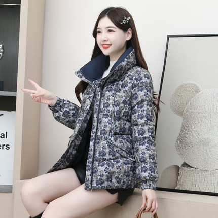 短款羽绒棉服女2025冬装新款韩版外套时尚复古立领保暖碎花面包服