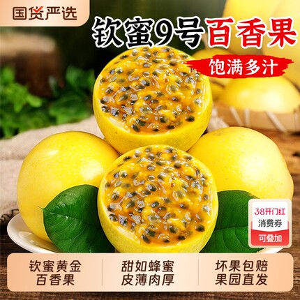 广西钦蜜9号黄金百香果新鲜5斤大果包邮当季百香果原浆水果旗舰店